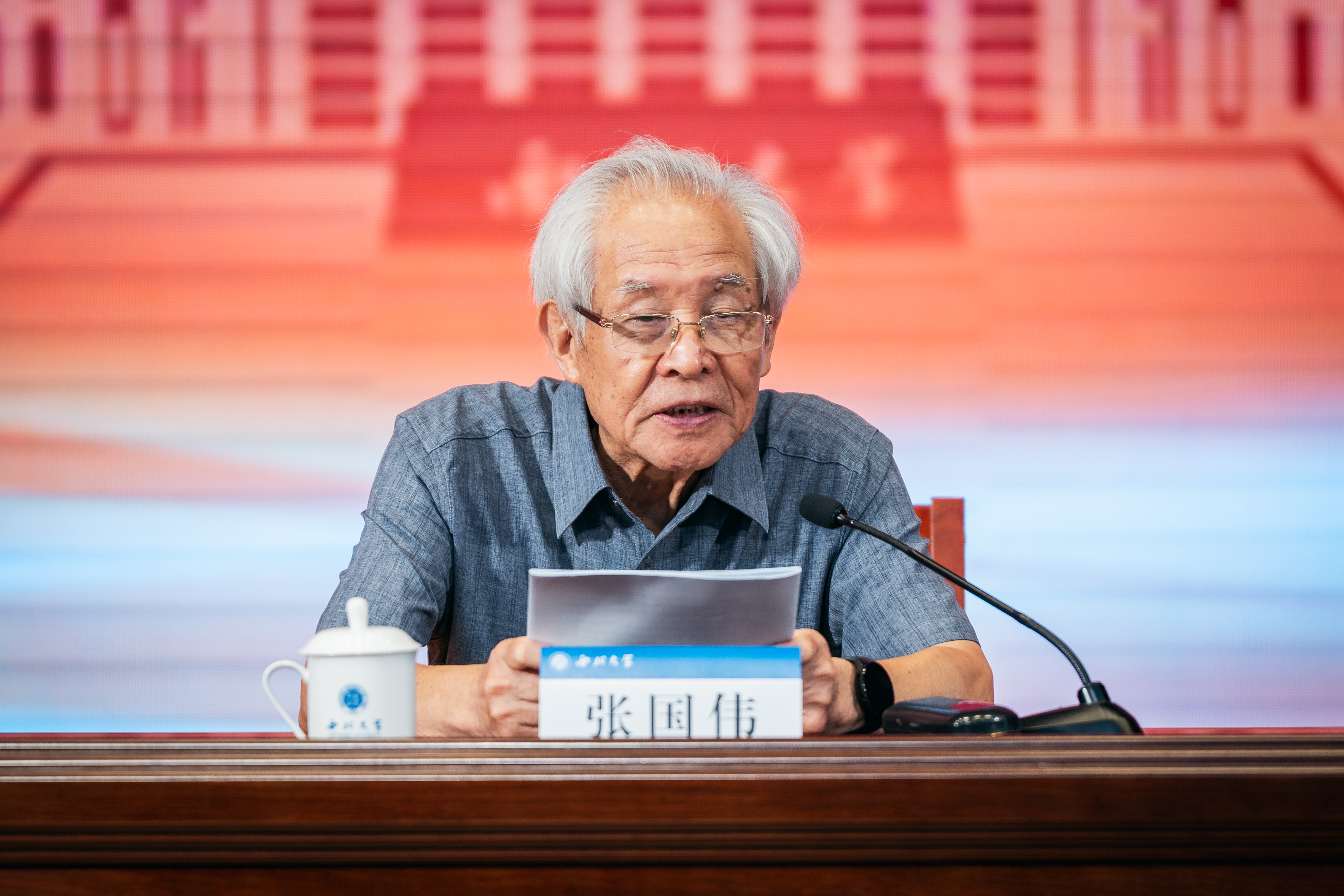 张国伟从战略科学家的视角,透过学校的发展历程、现实挑战和未来目标,提出了当前学校发展面临的实际困难、制约因素和重要机遇。他强调,要以聚焦国家重大战略需求和重大科学前沿问题,谋划大思路、组建大团队、申报大项目。最后他鼓励激励全体西大人,坚定信心决心,勇敢迎接挑战,聚精会神、奋发图强,发扬艰苦创业、自强不息的西大精神,把培育人才、聚集人才作为事业发展的重中之重,为早日实现建成世界一流大学的目标不懈努力。