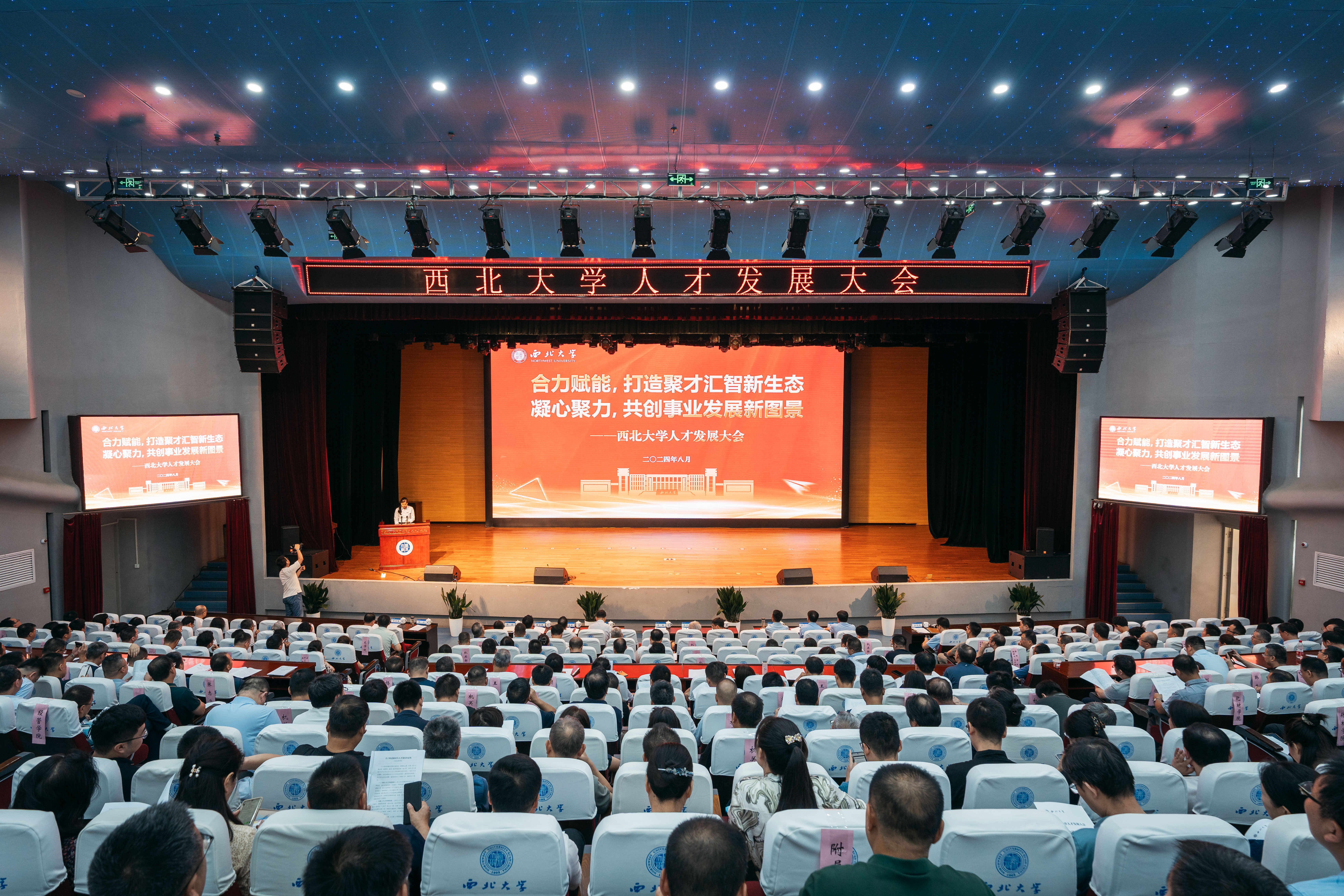 为全面贯彻落实党的二十大和二十届三中全会精神,深入学习贯彻习近平总书记关于人才工作的重要论述,持续深化新时代人才强校战略,加快推进学校第十四次党代会精神落实落地,8月20日,学校在长安校区召开了人才发展大会。中国科学院院士、地质学系教授张国伟,全体校领导,省委组织部人才工作一处处长钟雪斐,全校副处级以上干部,学校国家级、省部级高层次人才,省级以上荣誉称号获得者,二级、三级教授,以及无行政级别实体研究机构负责人参加了会议。
