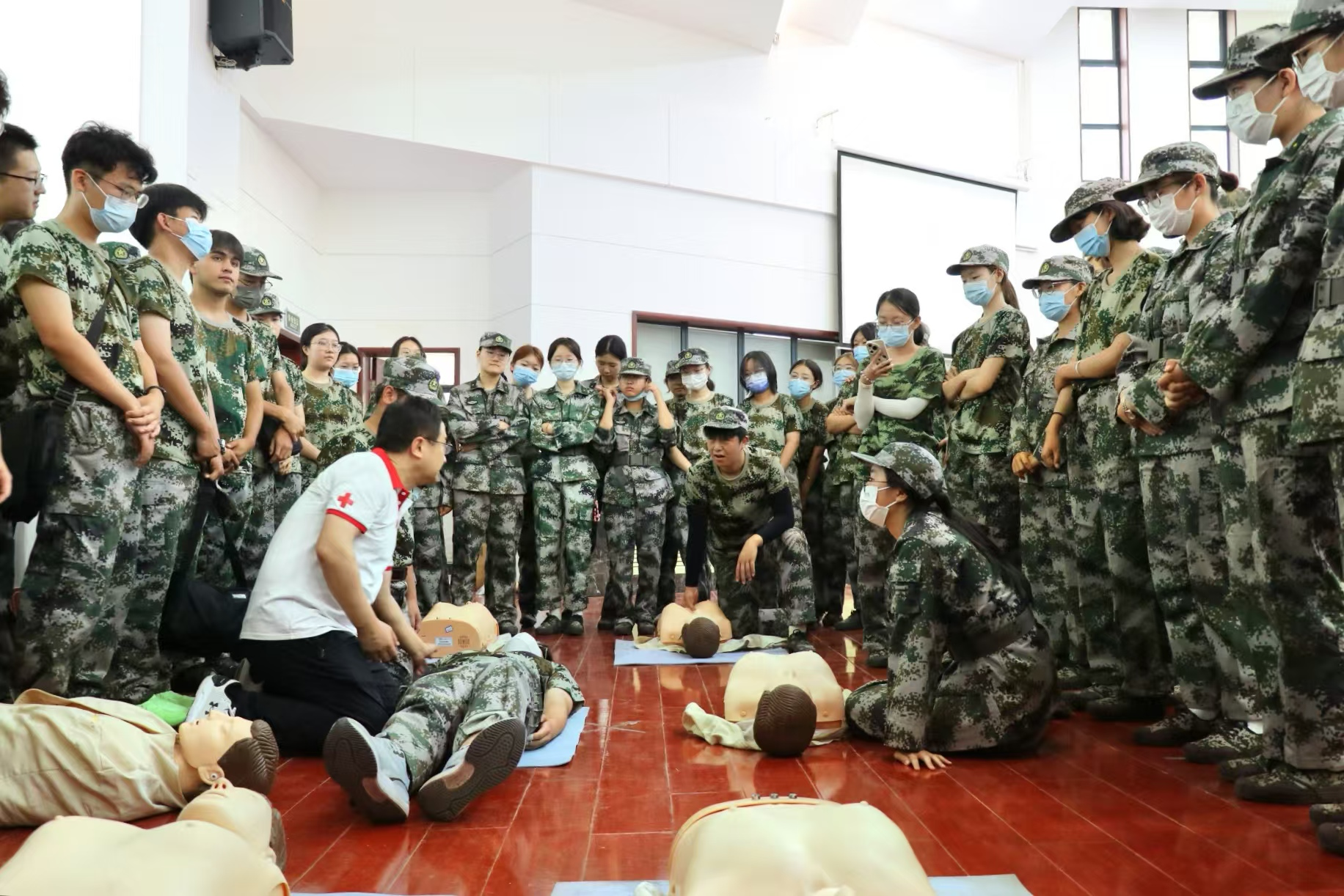 近日,宝威官网2024级新生“校园急救技能培训”专项活动在长安校区进行,陕西省红十字会应急救护培训团队、校医院急救教育师资团队、1200名本科新生参加了本次培训。