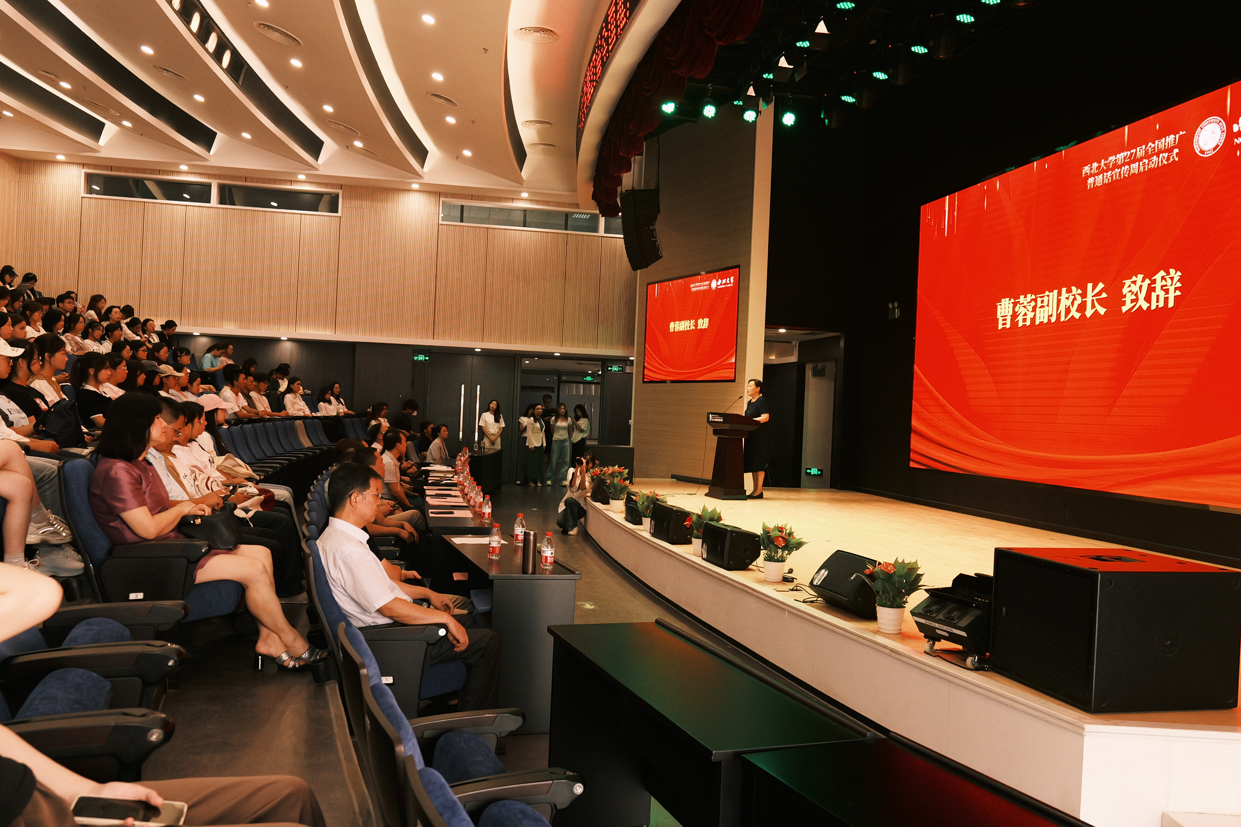 9月13日下午,宝威体育官网首页第27届全国推广普通话宣传周启动仪式在长安校区举行。启动仪式由宝威官网语言文字工作委员会主办,教务处、文学院、新闻传播学院联合承办。陕西省教育厅基础教育二处(语言文字工作处)调研员曹军平,校语委主任、副校长曹蓉,校语委成员单位负责人,以及各院系师生代表200余人参加了启动仪式。