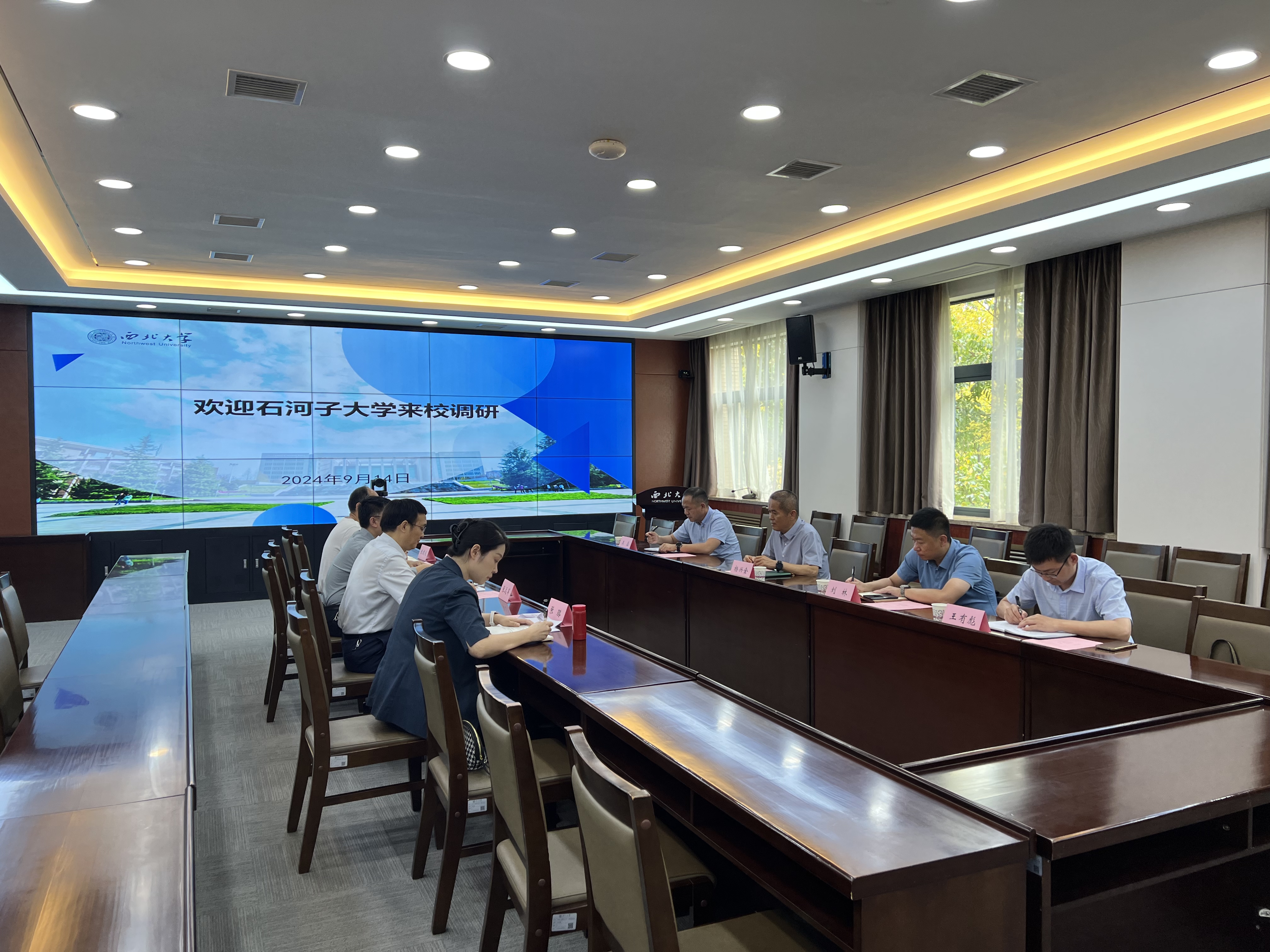 9月14日,石河子大学副校长杨兴全一行来校进行调研交流座谈。校党委常委、副校长张远军出席并主持座谈会。财务资产部、发展规划与学科建设处等相关单位负责人参加会议。