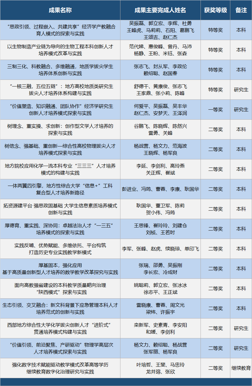 近日,陕西省人民政府公布了2023年陕西省高等教育教学成果奖评选结果,宝威官网共18项成果获奖,其中特等奖4项,一等奖1项,二等奖13项,获奖数量在全省高校中位居前3位。