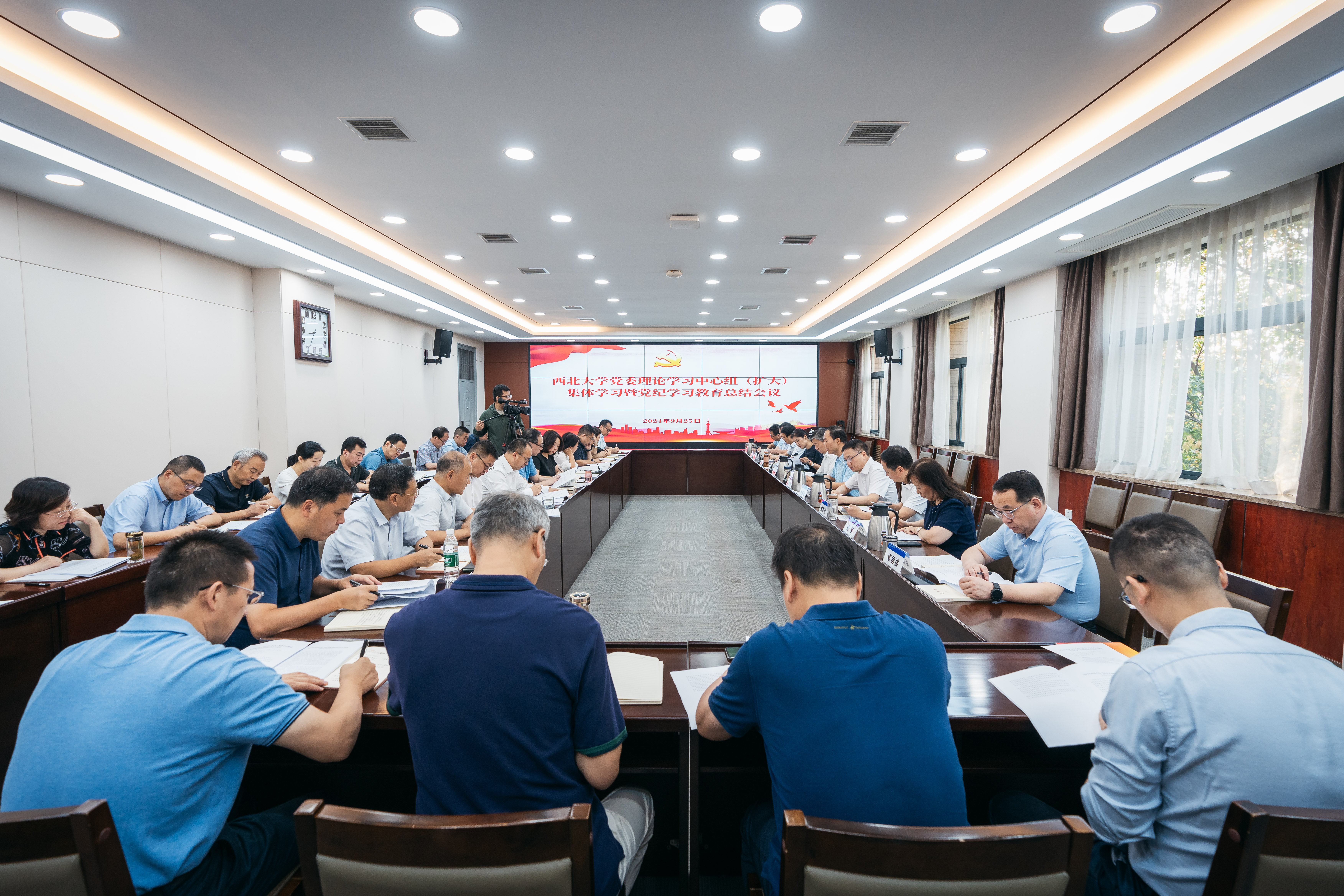 9月25日上午,校党委在长安校区召开理论学习中心组(扩大)集体学习暨党纪学习教育总结会议。校党委中心组成员,党委委员、纪委委员,学校党纪学习教育工作专班内设各组负责同志参加了会议。会议由校党委书记蒋林主持。
