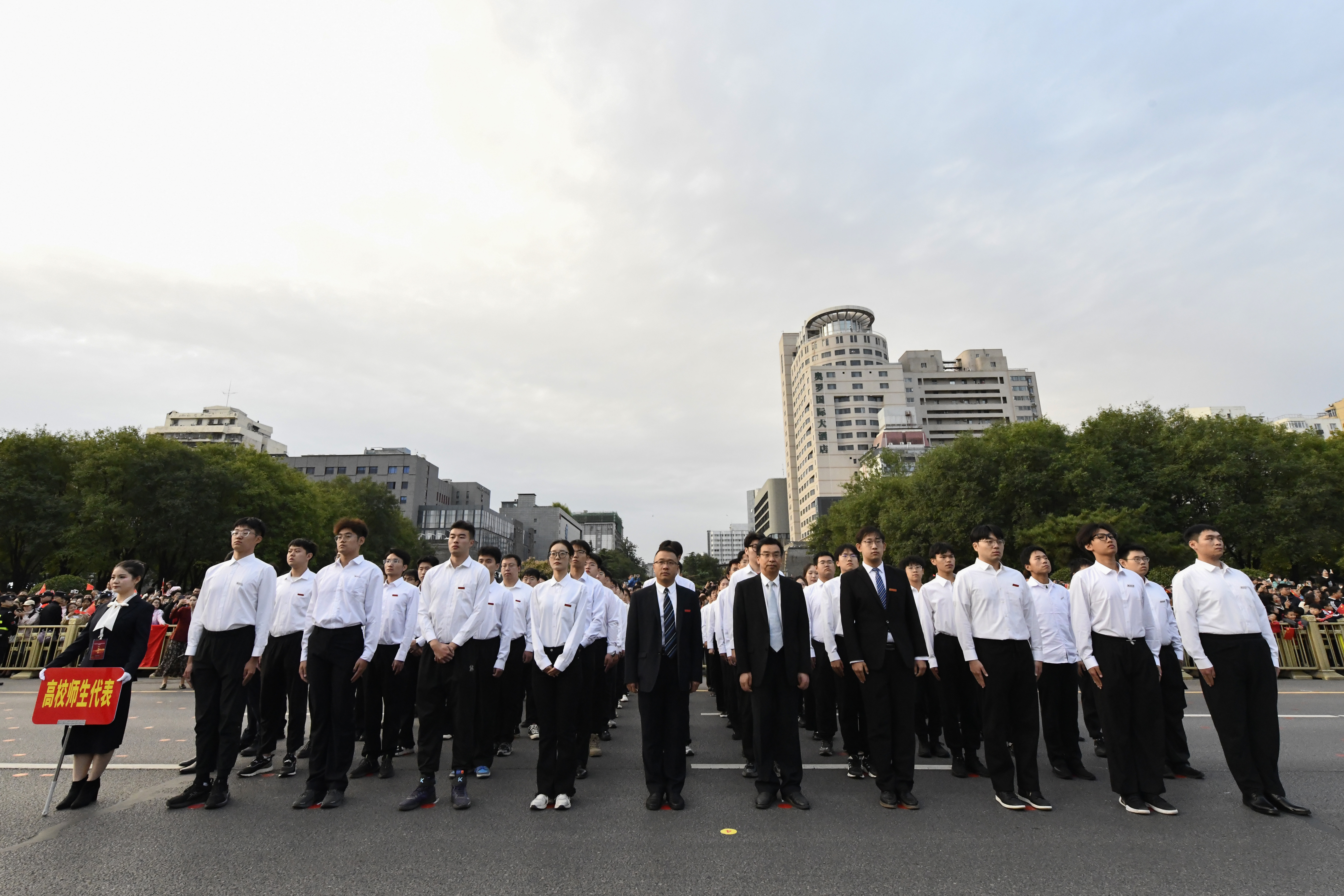 “从未如此心潮澎湃!”“以青春之我,向祖国告白!”“这是我度过最有意义的国庆节!”参与仪式的师生通过各种形式分享着自己的激动心情。