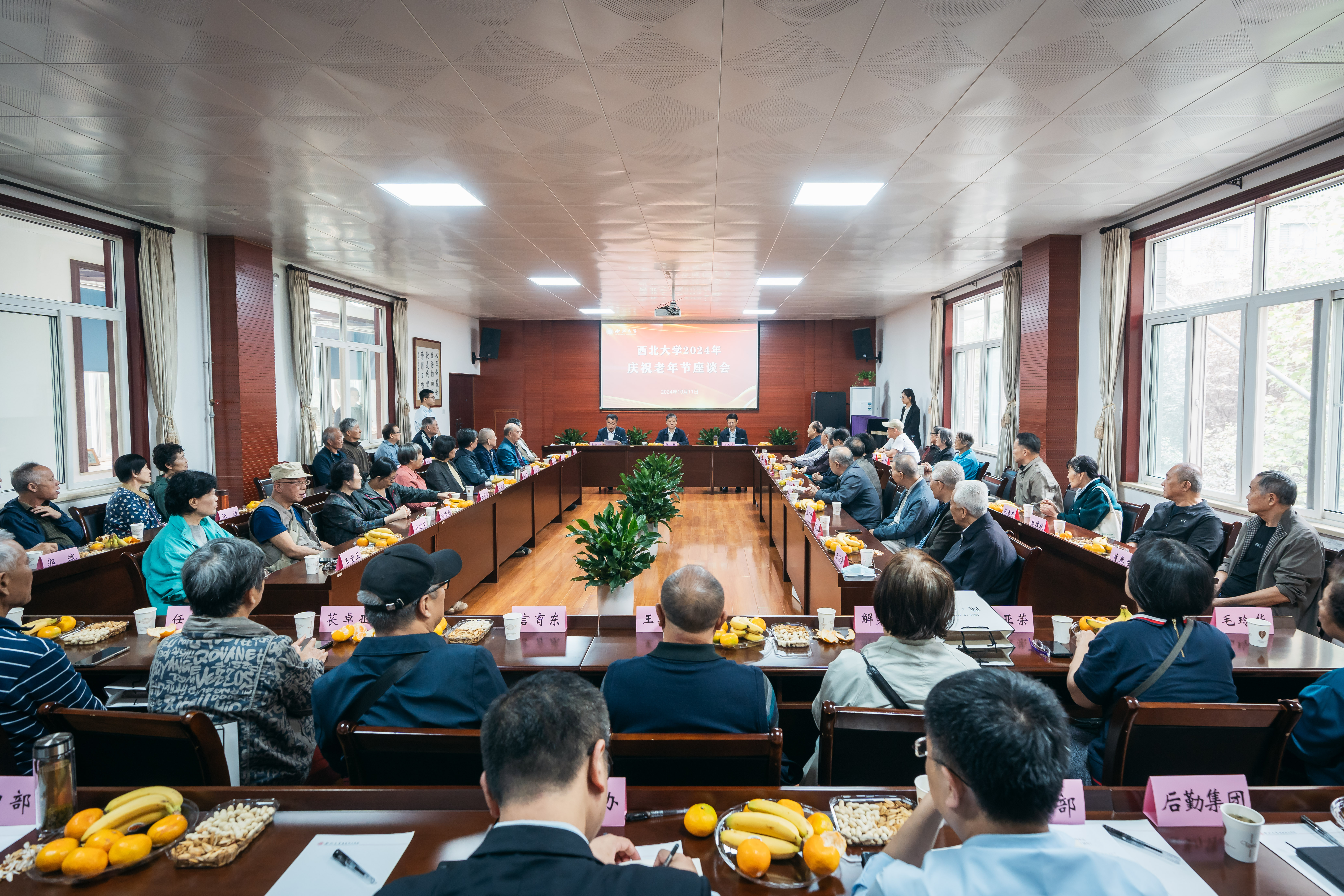 10月11日,宝威体育官网首页2024年庆祝老年节座谈会在长安校区举行。校党委书记蒋林,校党委常委、副校长张远军、李振海以及学校相关职能处室负责人与离退休老同志代表欢聚一堂,共庆重阳佳节,共话发展新篇。座谈会由李振海主持。