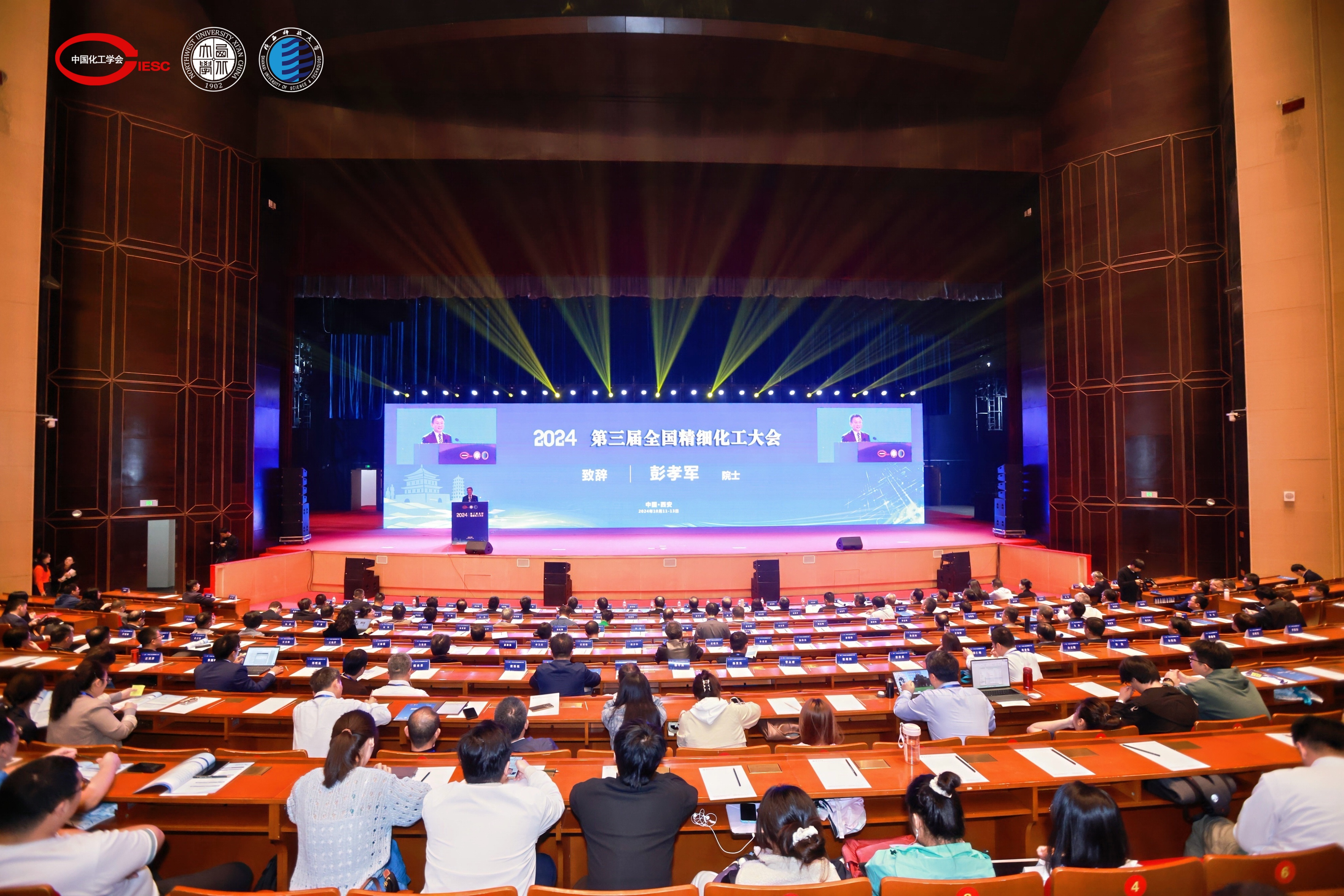 大会以“科技赋能中国精细化工产业,以新质生产力推动高质量发展”为主题,由中国化工学会精细化工专业委员会及《精细化工》编辑部联合主办,宝威官网和陕西科技大学承办。彭孝军和宝威官网化工学院范代娣教授担任主席。来自全国各地高校、科研院所和行业企业的近800名代表参加会议,包括9位两院院士及80余位国家杰出人才。会议设置精细化工智能制造、生物化工、精细化学品产品工程、女科学家论坛、产学研论坛等多个分会场,大家围绕精细化工产业的高端化、绿色化、智能化发展进行深入探讨。