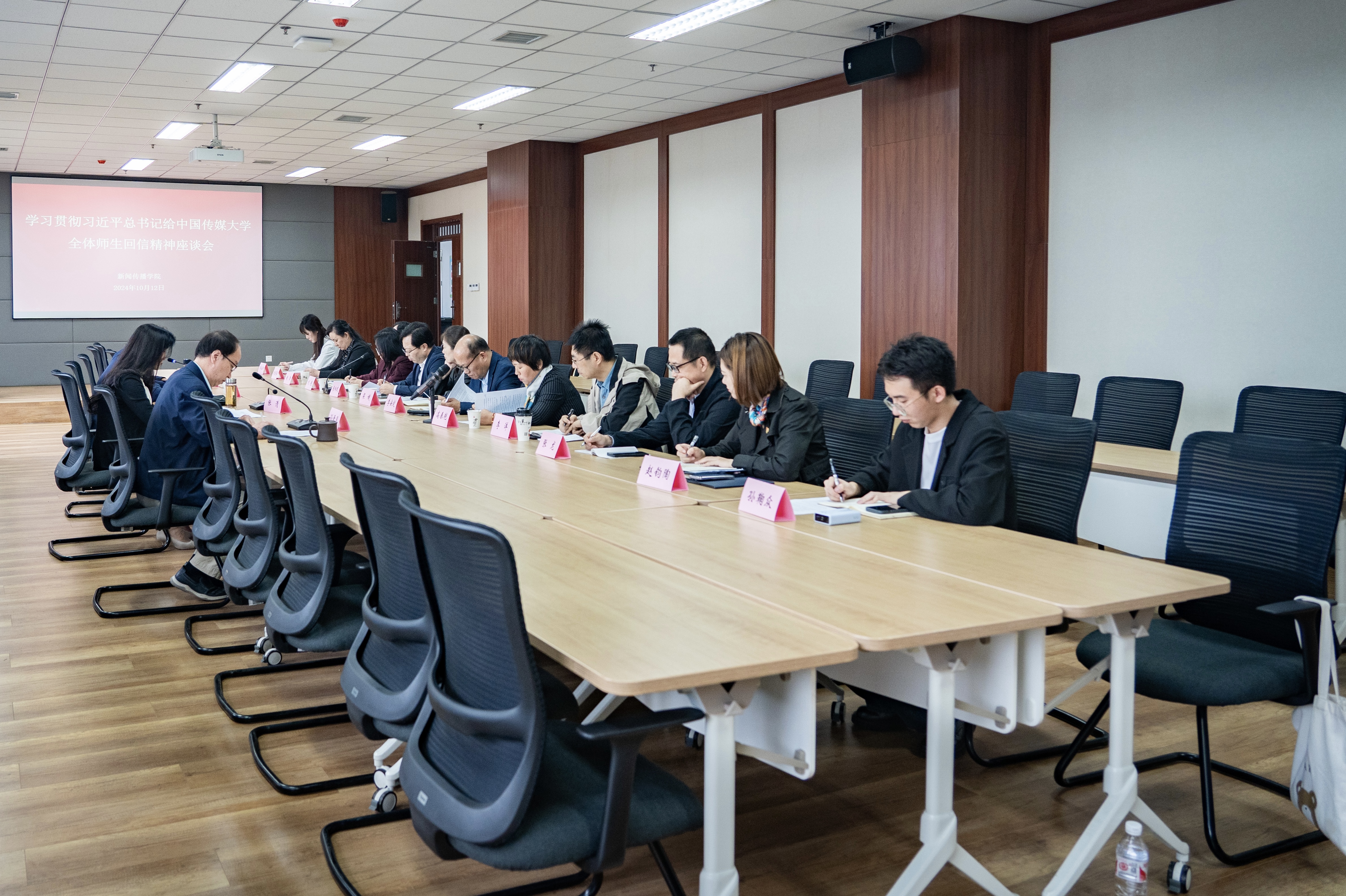 10月12日下午,学校在新闻传播学院召开学习贯彻习近平总书记给中国传媒大学全体师生回信精神座谈会。校党委副书记张清,校党委常委、宣传部部长田明纲出席并讲话。会议由学院党委主要负责人主持,学院党政班子成员、师生代表参加。