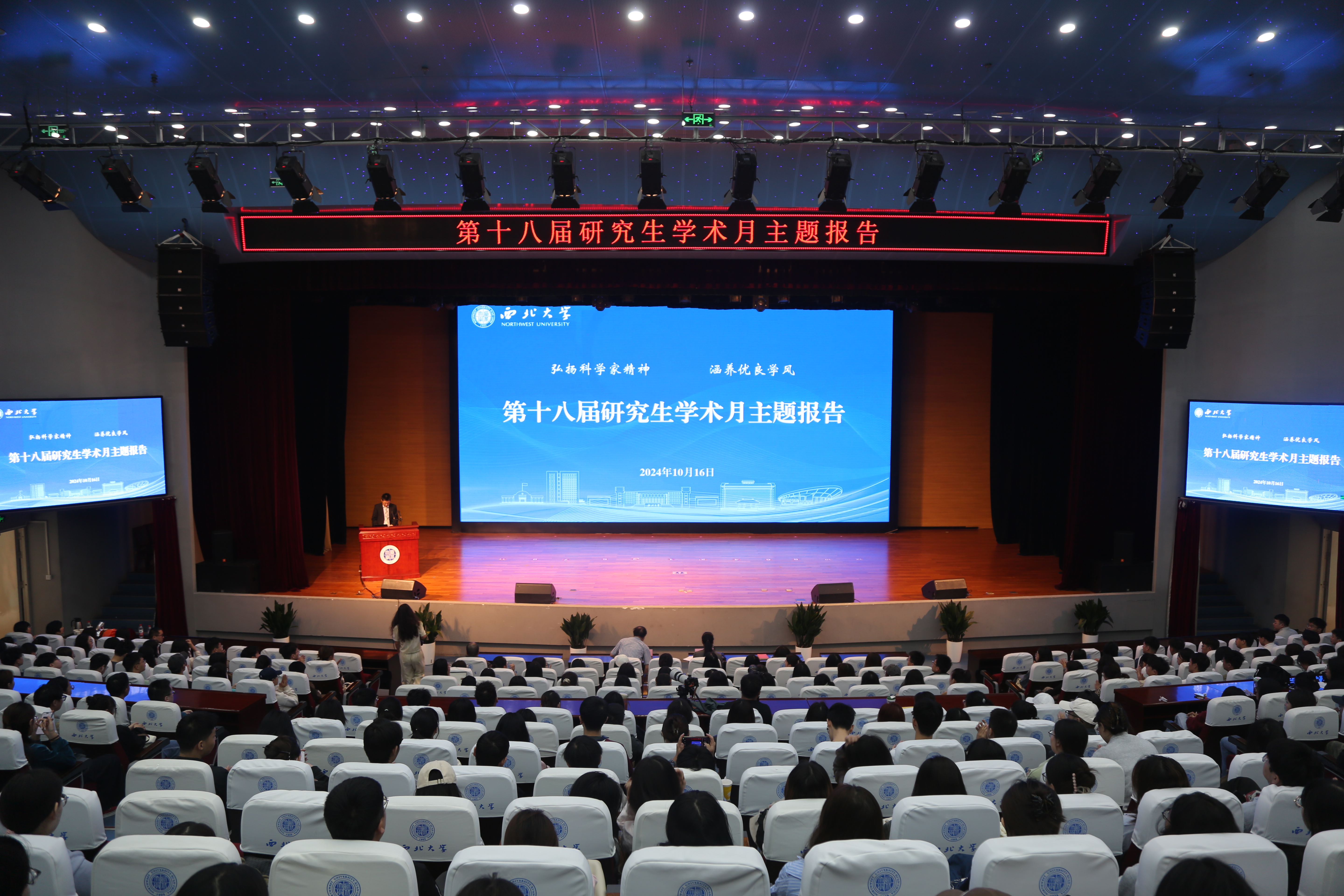 10月16日,中国科学院院士、学校博物馆馆长、地质学系教授舒德干为学校第十八届研究生学术月活动作了题为“弘扬科学家精神 力行创新”的主题报告,校党委副书记张清致辞。各培养单位在校研究生、2023年首次上岗研究生导师代表及2024年度本硕贯通培养计划入选者共500余人听取了报告。报告会由研究生院(部)负责人主持。