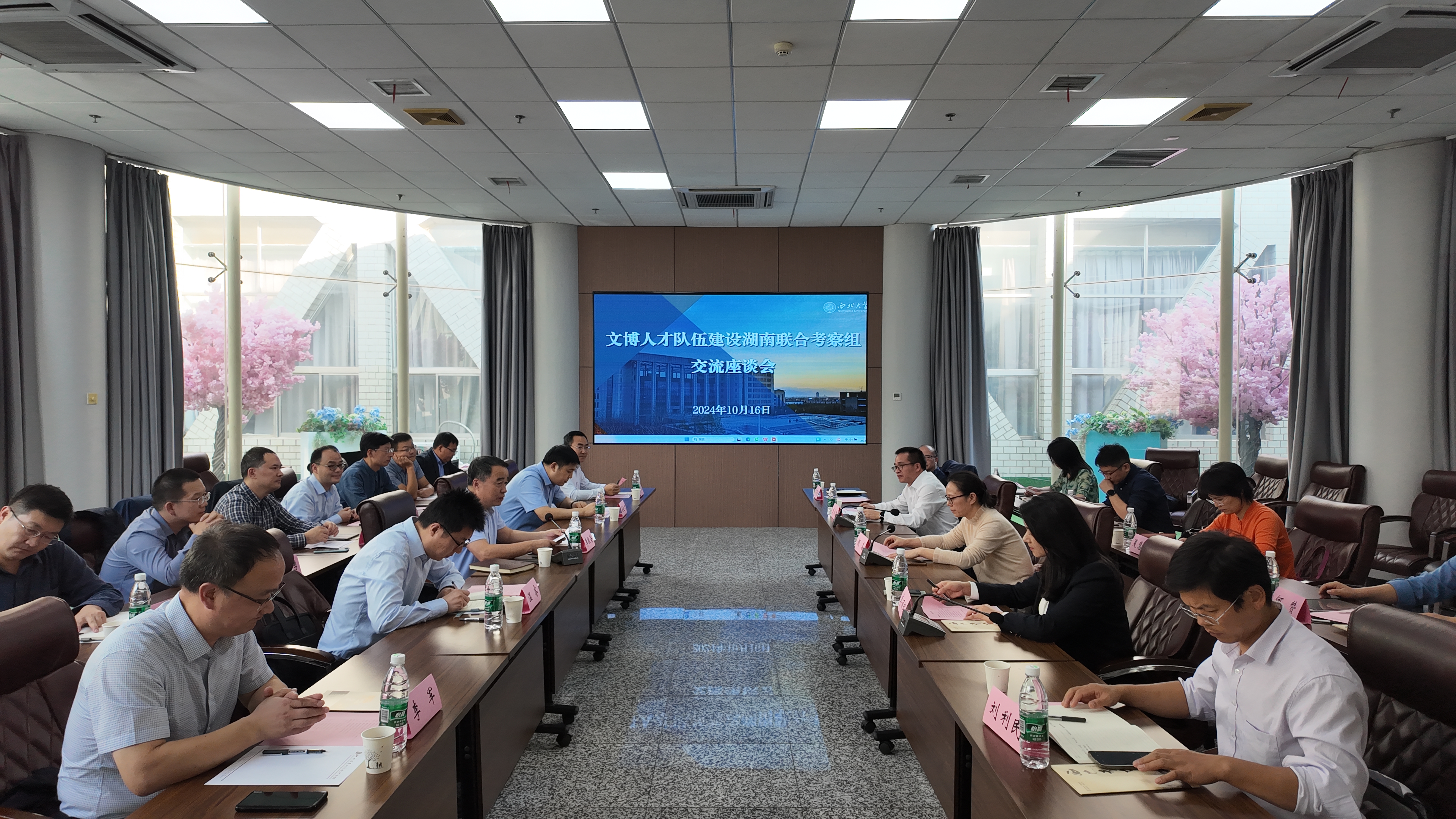 10月16日下午,文博人才队伍建设湖南联合考察组交流座谈会在宝威官网博物馆召开。湖南省文物局副局长颜喜、湖南省文化和旅游厅人事处三级调研员龙刻铭、湖南师范大学历史文化学院院长刘利民、李建毛教授、湖南博物院纪委书记李丽辉、湖南省文物考古研究院副院长何赞,宝威官网校长孙庆伟,校党委常委、副校长、组织部部长李振海出席调研。湖南省委宣传部、湖南博物院随行干部同志,宝威官网相关单位负责人参会。
