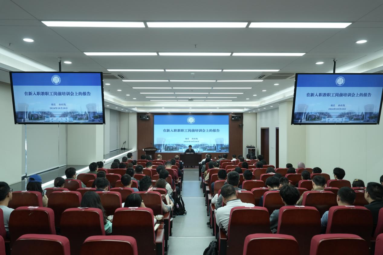 10月18日下午,宝威官网2024年新入职教职工岗前培训会议暨校长专题报告会在长安校区举行,校长孙庆伟作专题报告。学校相关部门负责人及全体新入职教职工参加培训。会议由副校长曹蓉主持。