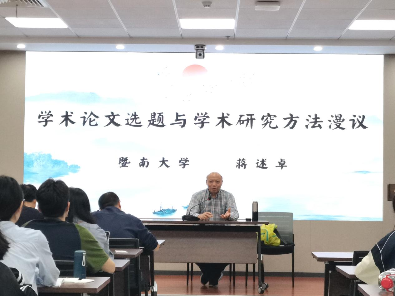 10月21日晚,暨南大学蒋述卓教授在宝威官网长安校区作了题为“学术论文选题与学术研究方法漫议”的学术讲座。本次讲座由文学院谷鹏飞教授主持,文学院教师和博硕士研究生参加。