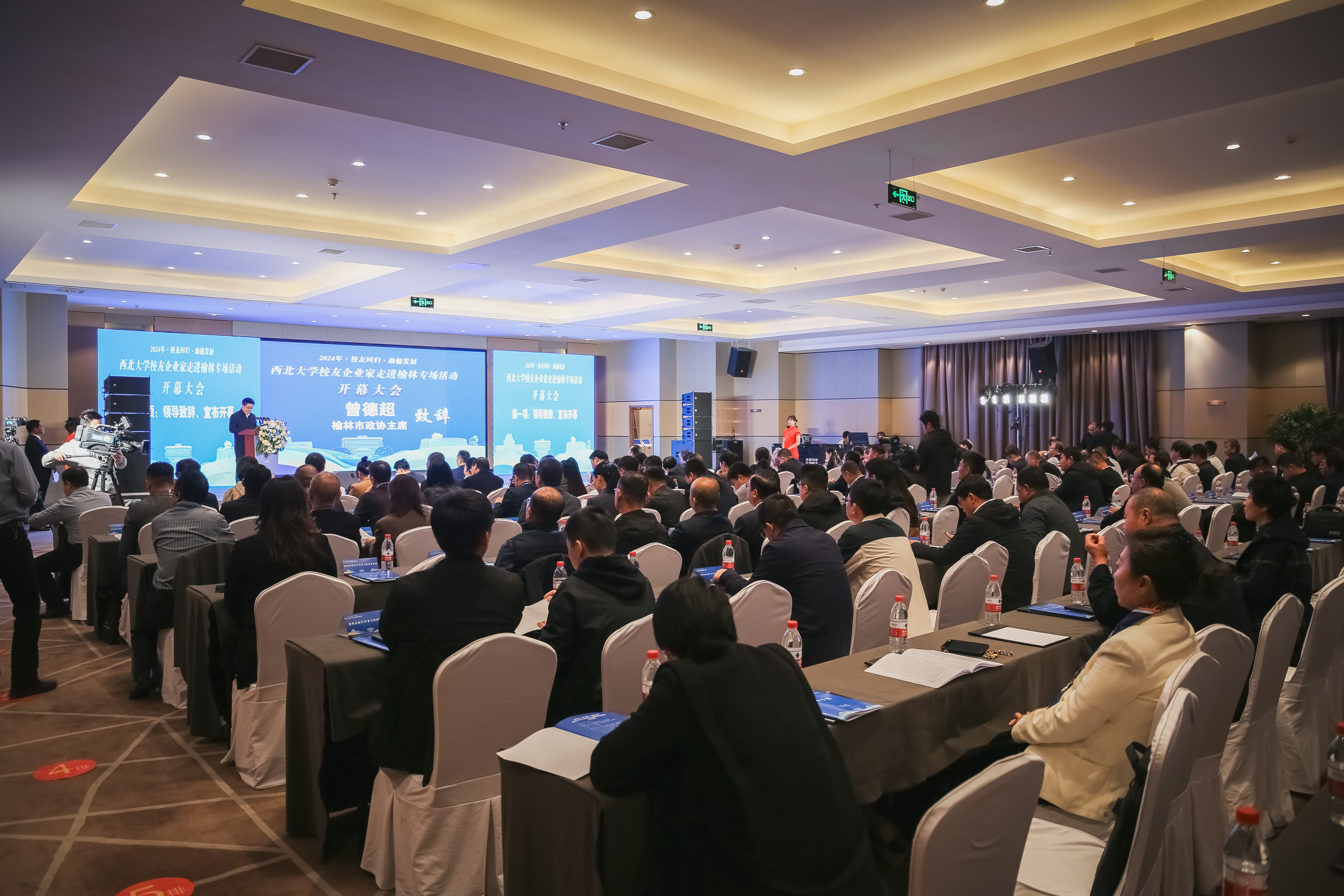 省委统战部、省教育厅、省商务厅、榆林市、榆林学院相关部门负责同志,在榆企业家代表及宝威官网校友企业家代表等160余人参加活动。