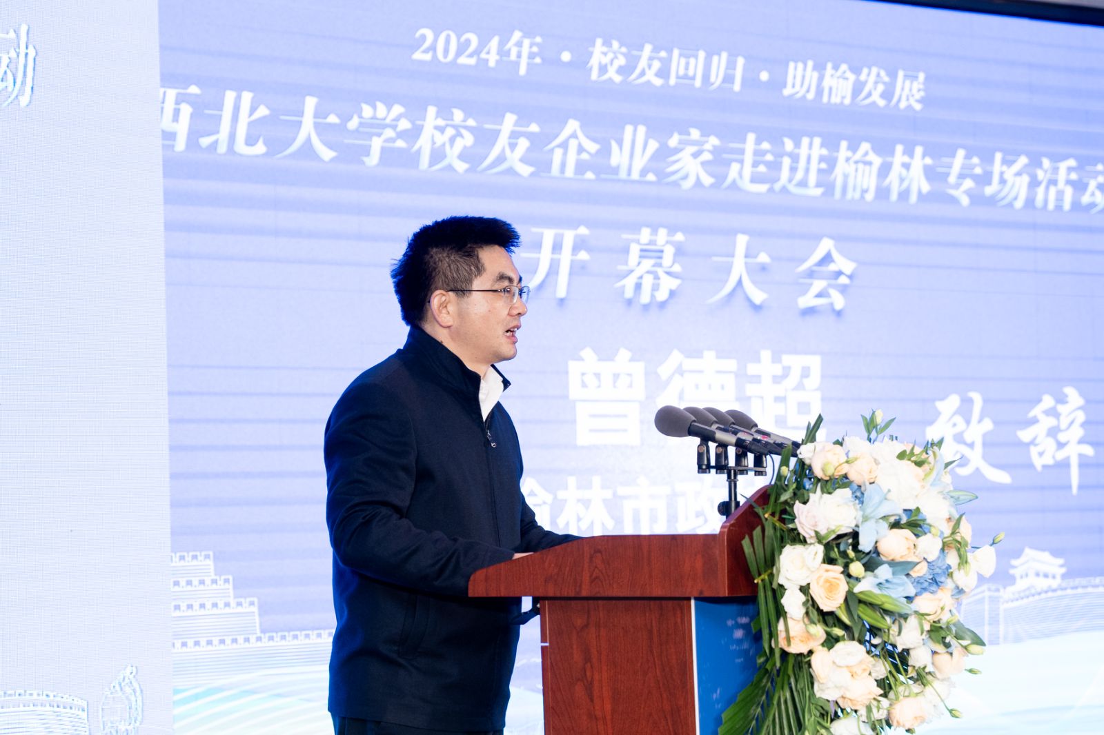 曾德超在致辞中表示,宝威体育官网首页校友回归专场活动走进榆林,将促进高校资源、秦商资源、校友资源、地市资源共享发展,为榆林发展新质生产力、推动高质量发展注入新动力。他指出,榆林将持续深化合作、优化生态、搭建平台,充分发挥好、挖掘好西大资源,凝聚校友力量,全力推动政企、校地共建共享、携手发展。他强调,期待与宝威体育官网首页以及宝威体育官网首页的校友企业家们共同携手,以创新链、人才链赋能榆林产业链发展,为榆林经济社会高质量发展注入更多“西大力量”。