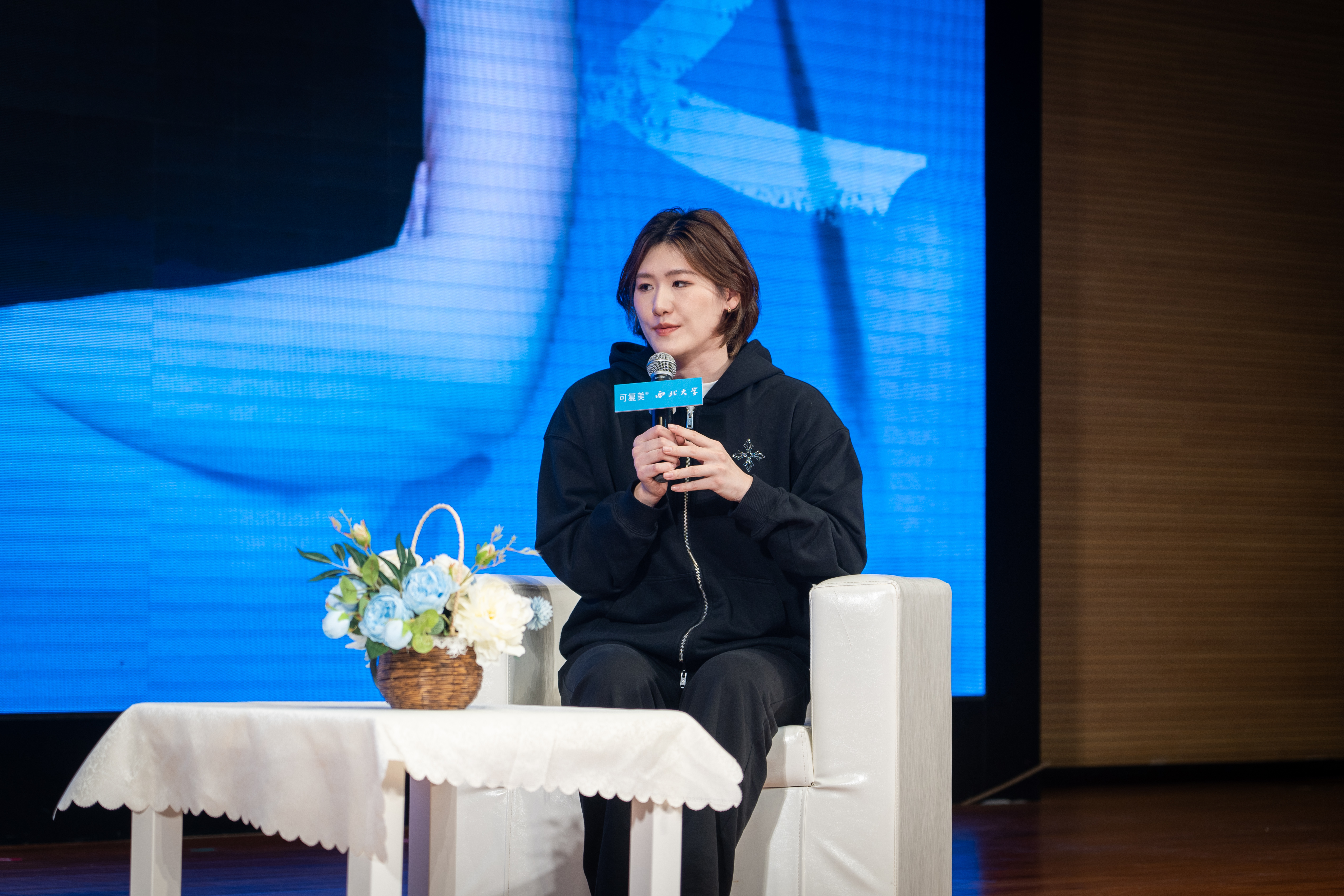 分享会伊始,叶诗文讲述了在清华求学时的经历。“我觉得课堂学习可以带给我很多以前在运动队接触不到的东西,让我对于游泳有更深的理解。”随后,她回顾了十余年的运动生涯,与在场师生分享了自己面对挫折的心路历程。她勉励在场学生,“成长过程,都会有迷茫的时刻,要静下心来问问自己喜欢什么、热爱什么。如果暂时没有寻找到自己特别擅长的领域,则要学着多去尝试。人生就是一个不断试错的过程,千万不要害怕失败。”她祝愿所有的同学们都能够在热爱的事业上实现自己的梦想。