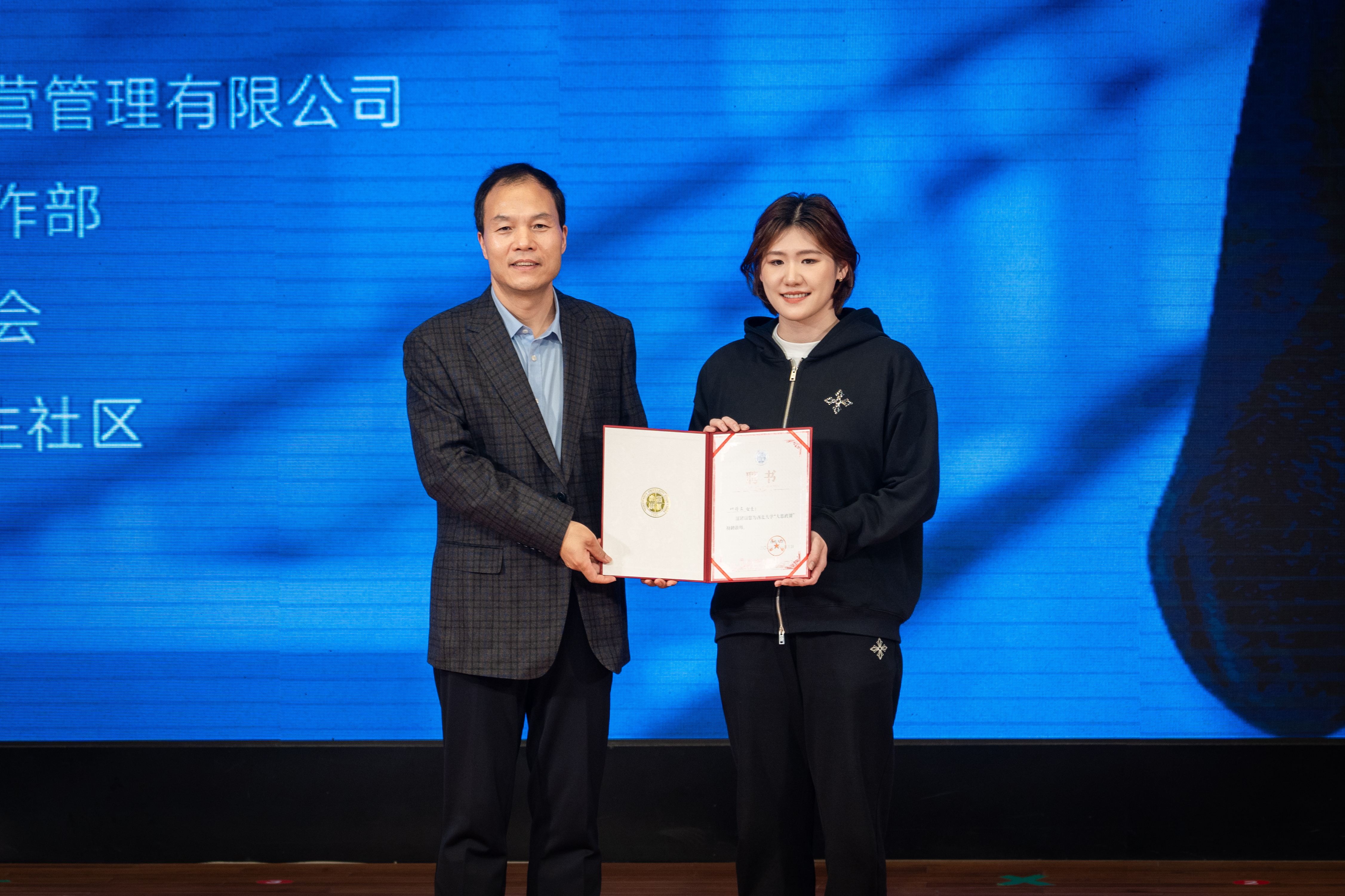 活动上,叶诗文受聘宝威体育官网首页“大思政课”特聘教师。吕建荣为叶诗文颁发了聘书,叶诗文向学校赠送了签名海报和“纪念战衣”。