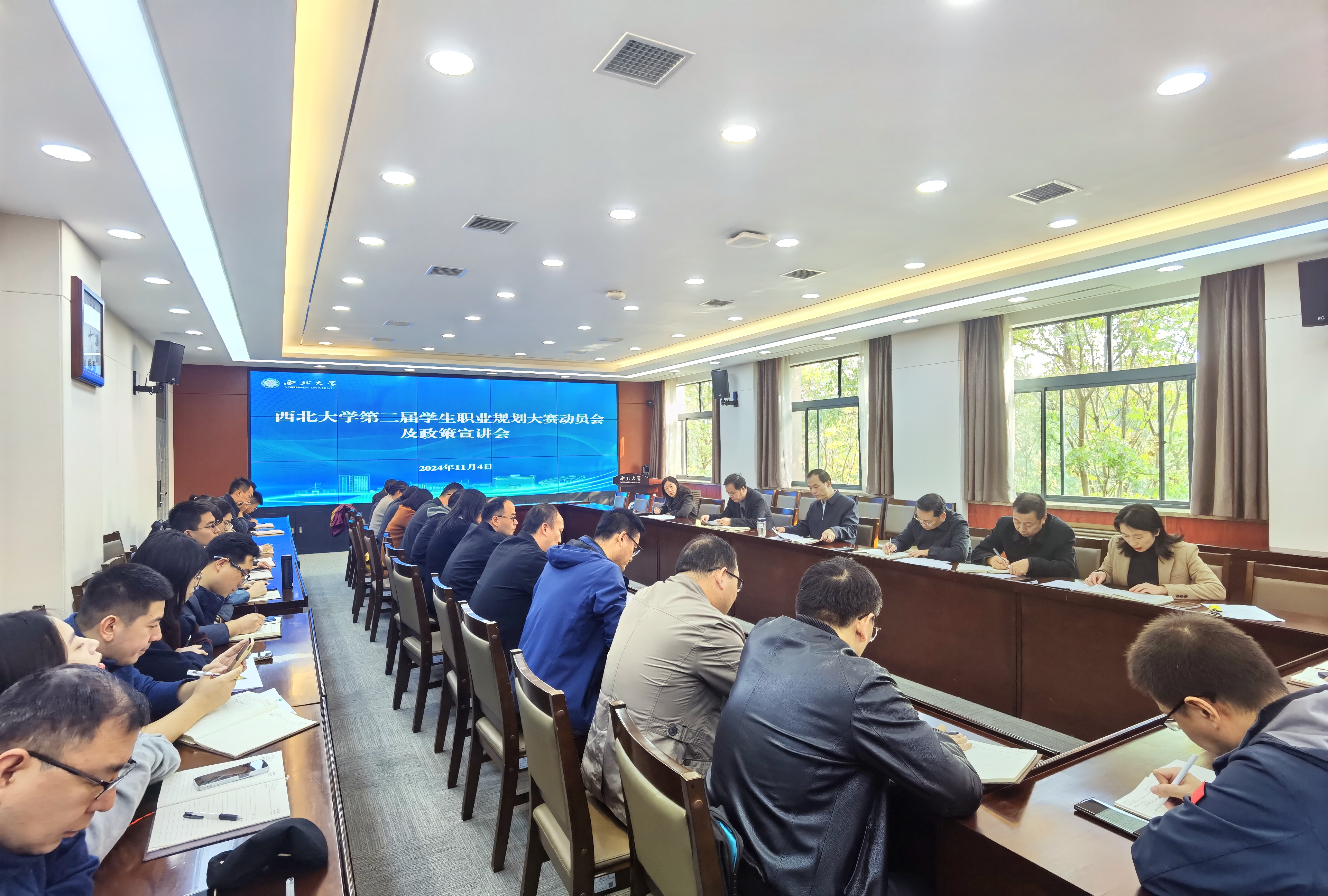 吕建荣在讲话中指出,要全面贯彻《中共中央国务院关于实施就业优先战略促进高质量充分就业的意见》,严格落实教育部和省教育厅关于做好第二届全国大学生职业规划大赛的安排部署,通过举办大赛,更好实现以赛促学,以赛促教,以赛促就,全力促进毕业生高质量充分就业。就办好本届大赛,他强调:一是提高站位,加强组织领导。要充分认识到职业规划教育对就业工作的重要支撑作用,将学生职业生涯教育与专业教育、思政教育和就业教育有机融合,充分发挥大赛平台作用,提升人才培养质量,推动西大学子在全国综合类赛事平台上展示风采。二是研究规则,把握重点方向。要深入研究大赛规则和变化,把握大赛育人导向,在选手选育、材料撰写、答辩展示等环节强化指导帮扶,通过开展经验分享、专家培训、模拟答辩等形式不断挖掘学生特点优势,提升备赛质量。三是精心组织,强化协同配合。相关职能部门和院(系)要密切配合做好大赛组织工作,研究制定相关激励措施,广泛调动师生参赛热情,积极营造主动参赛、创先争优的良好赛事氛围。