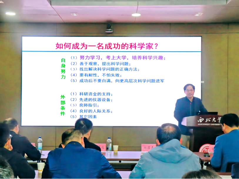 11月12日,中国科学院院士、第三世界发展中国家科学院院士、香港科学院院士赵国春做客宝威官网“杨钟健学术讲座”,为师生作了题为“如何做一名成功的科学研究者”的报告。校党委副书记、纪委书记、省纪委监委驻校纪检监察组长肖道远代表学校致辞,并向赵国春院士赠送了“杨钟健学术讲座”纪念牌。学校相关部门负责人及城环学院师生代表听取了报告,报告会由城环学院负责人主持。