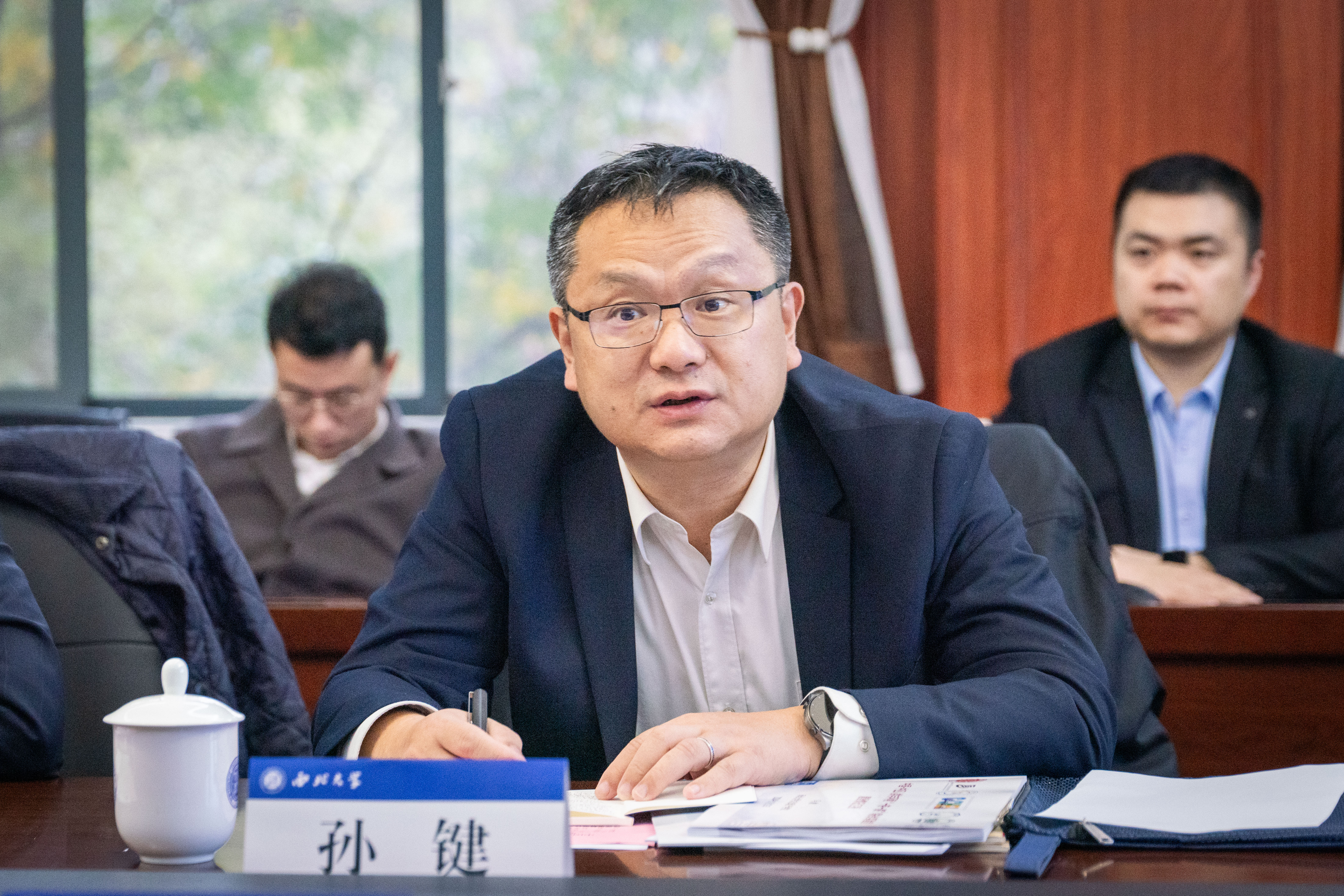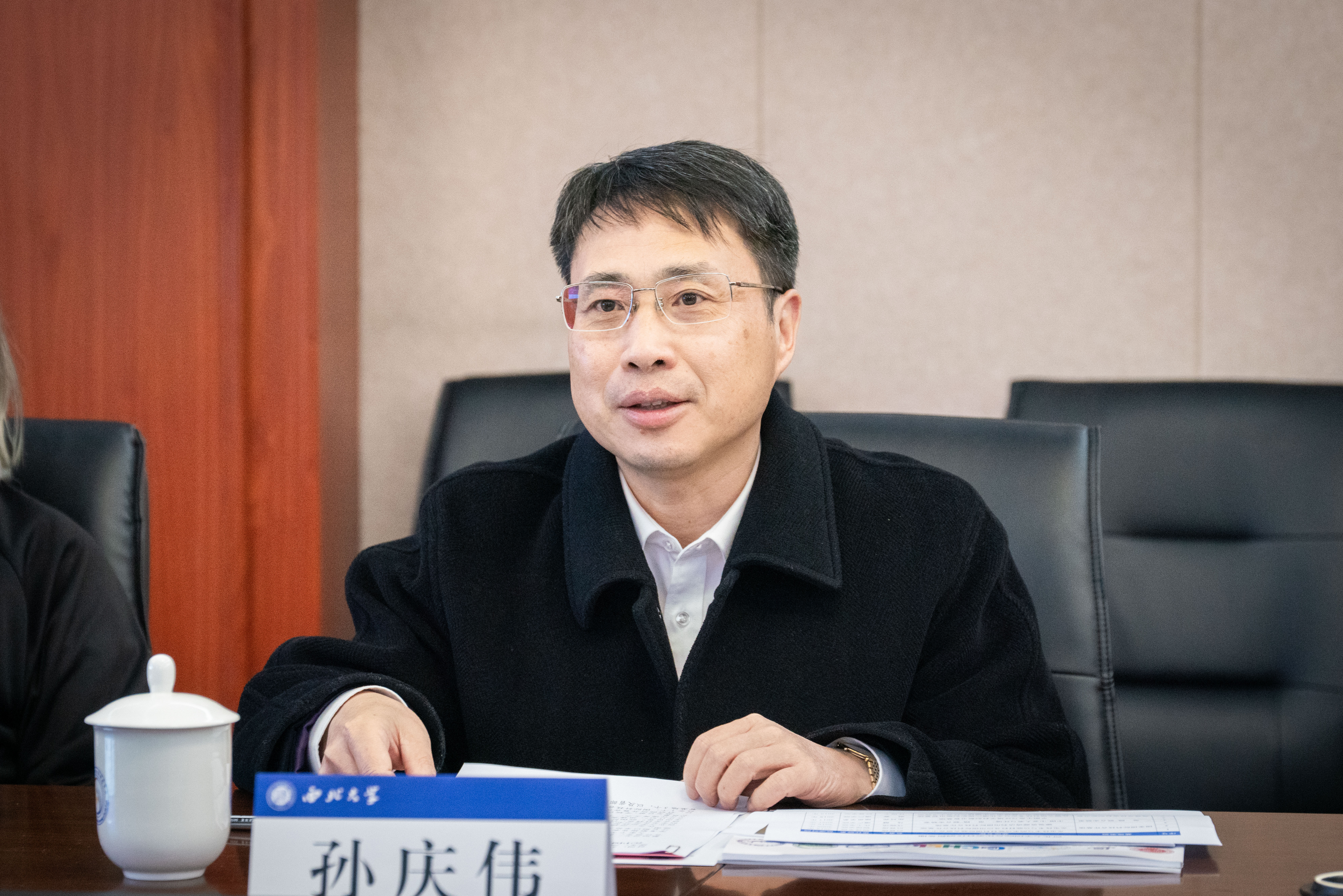 孙庆伟在致辞中对科技部国际合作司和陕西省科技厅领导一行到校考察指导表示欢迎,并简要介绍了学校的历史沿革、学科总体情况及国际科技合作方面取得的成效等。他表示,学校深入践行习近平总书记关于“让文物活起来”“让历史文脉更好地传承下去”等重要指示精神,高度重视“一带一路”联合实验室建设,将学科建设与服务国家重大战略有机结合,以学术研究推动民心相通,提升国际传播力和影响力。