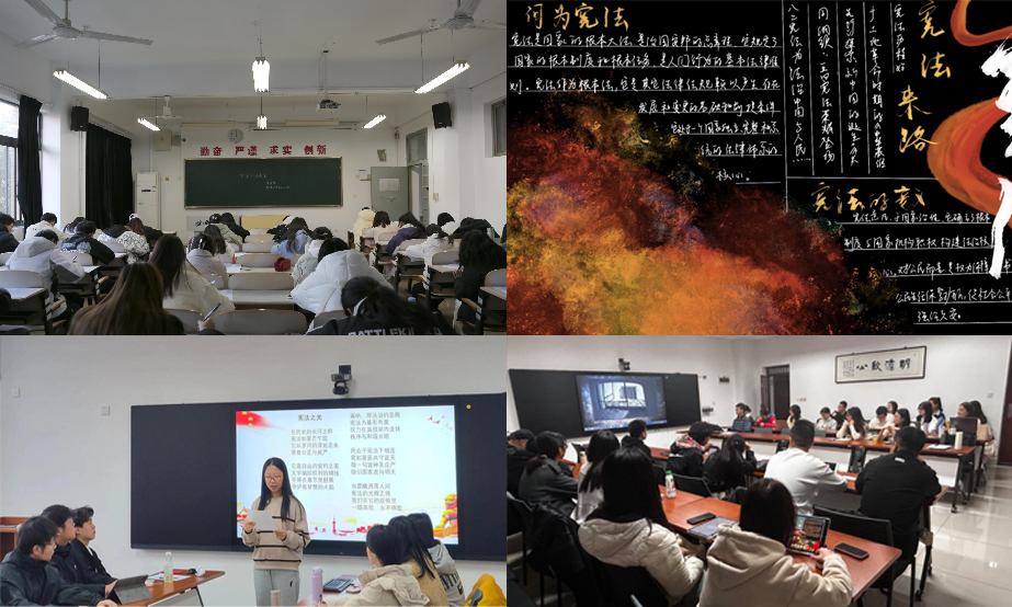 近期,法学院师生围绕宪法日主题,开展了“学宪法 讲宪法”演讲比赛、素养竞赛、手抄报征集活动,宪法知识专题讲座、社会实践座谈会、“法趣交融·智动青春”宪法主题趣味游园会等活动。