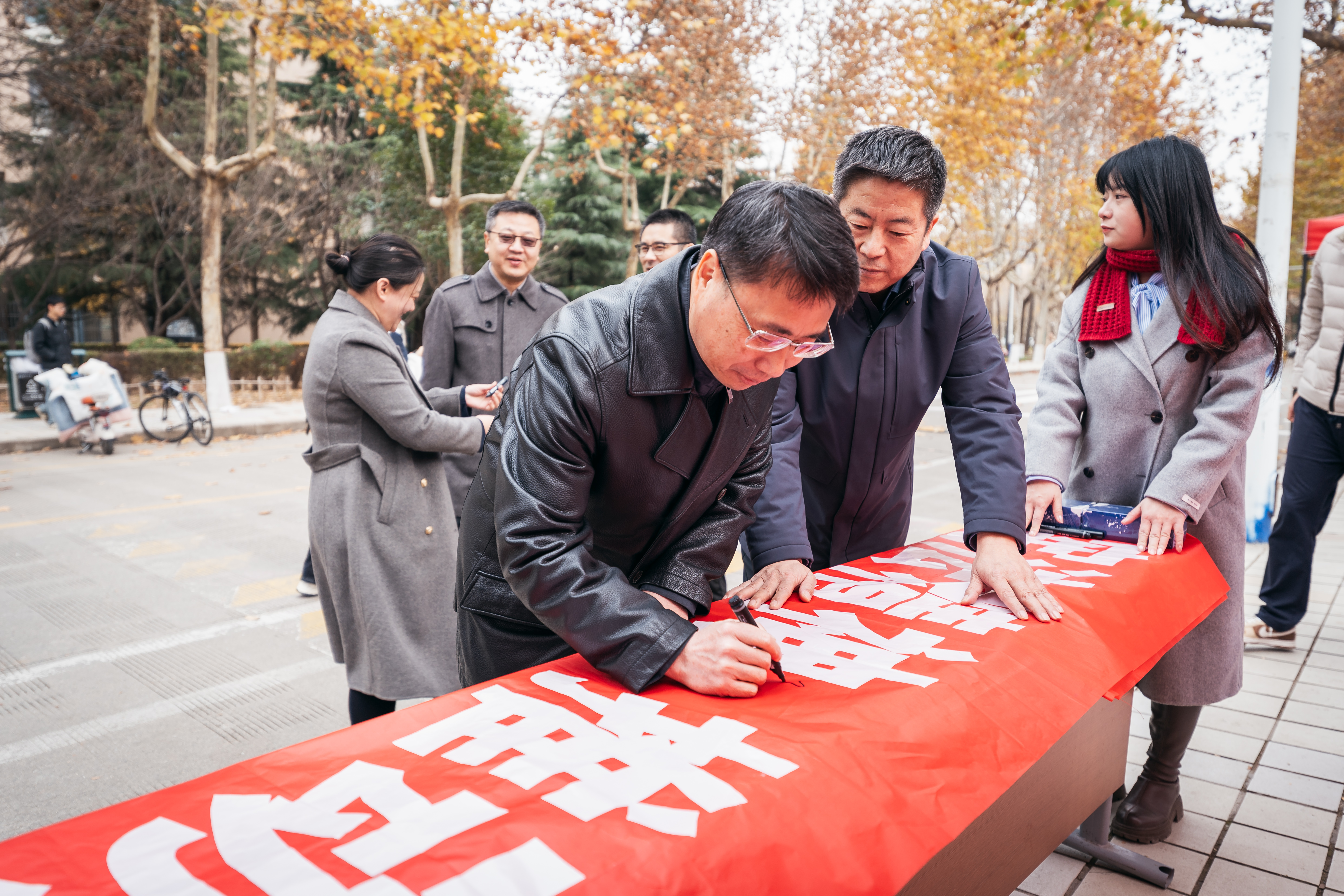 12月4日中午,学校在校内开展普法宣传外展及签名仪式。通过宪法主题展板、传单、手册等宣传材料鼓励师生们积极学习宪法,营造尊法学法守法用法的浓厚氛围。还利用“宪法知识竞答”“法律图片猜词”等形式丰富的活动提高全校师生的参与度,使得宪法的宣传工作生动而富有成效。校长孙庆伟,校党委副书记赵作纽、张清,校党委常委、副校长张远军,校党委常委、宣传部部长田明纲到场参加活动。
