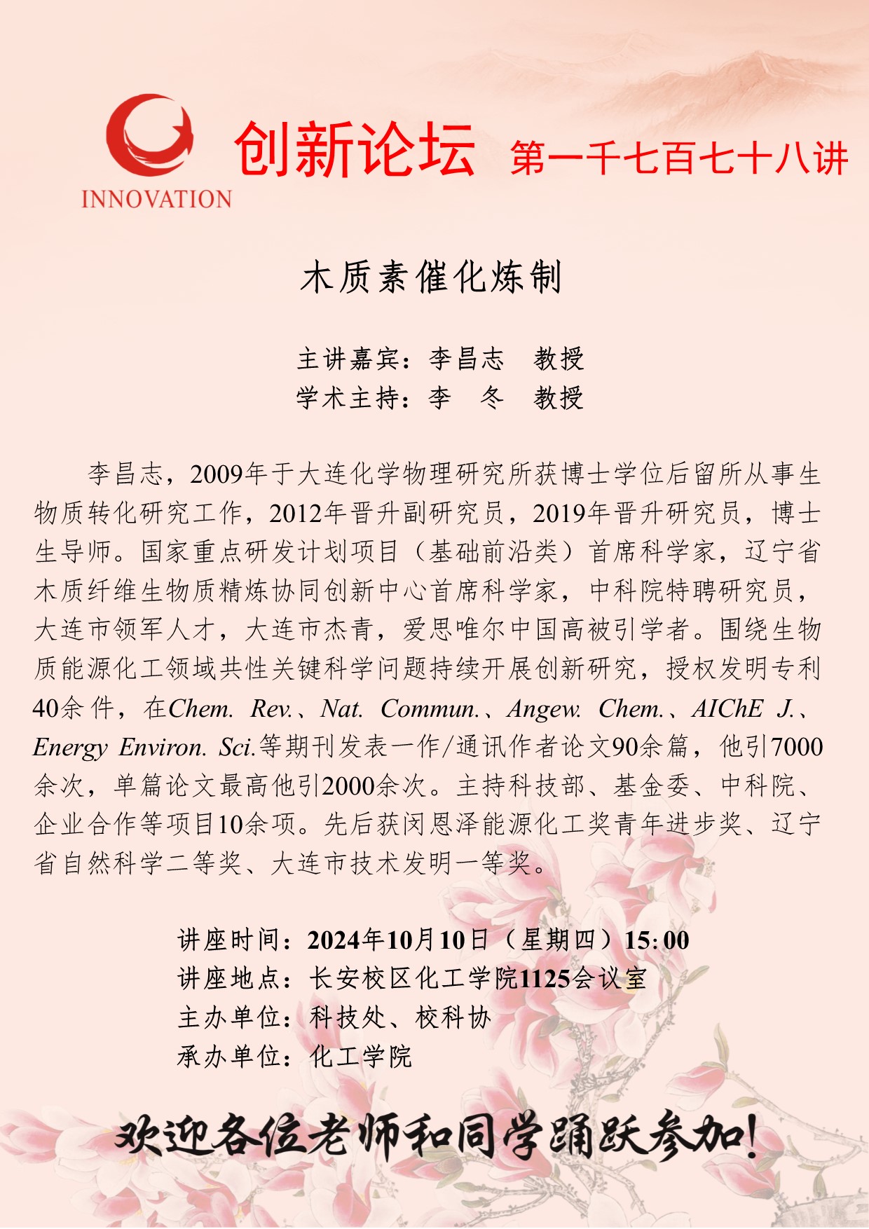 李昌志 教授 宝威体育官网首页创新论坛第一千七百七十八讲:木质素催化炼制 讲座时间 2024年10月10日(星期四)15:00 讲座地点 长安校区化工学院1125会议室 讲座人介绍 李昌志 教授 讲座内容