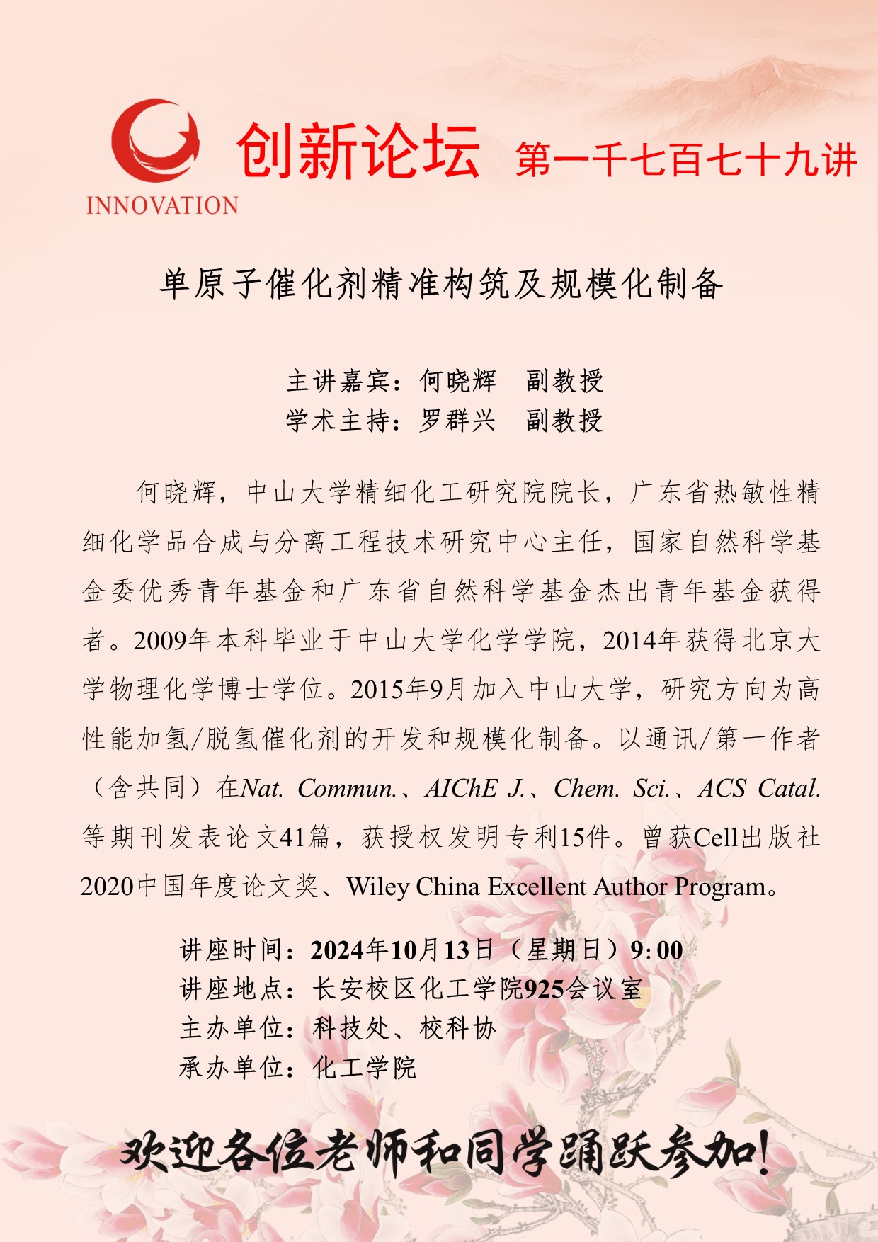 何晓辉 副教授 宝威体育官网首页创新论坛第一千七百七十九讲:单原子催化剂精准构筑及规模化制备 讲座时间 2024年10月13日(星期日)9:00 讲座地点 长安校区化工学院925会议室 讲座人介绍 何晓辉 副教授 讲座内容