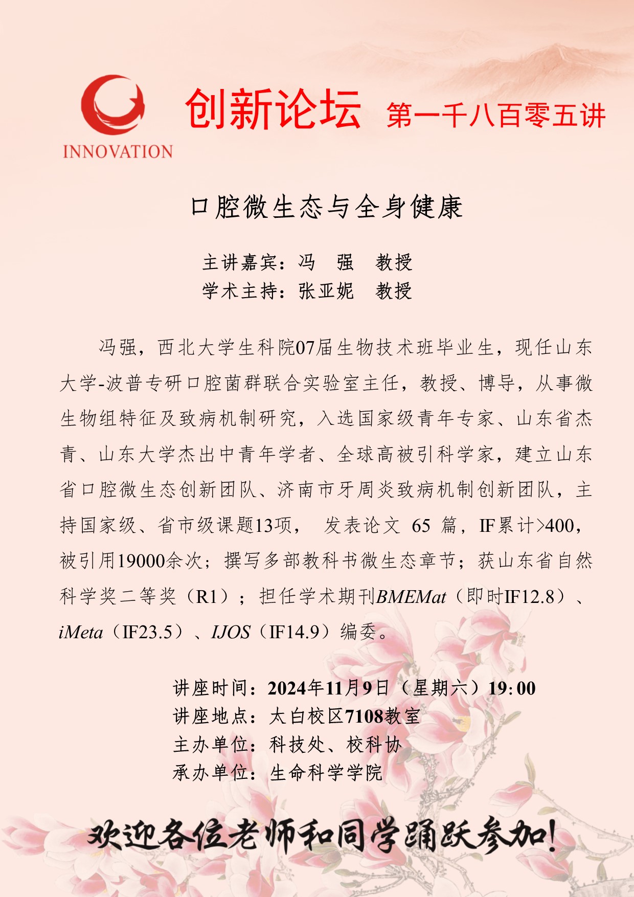 宝威体育官网首页创新论坛第一千八百零五讲:口腔微生态与全身健康