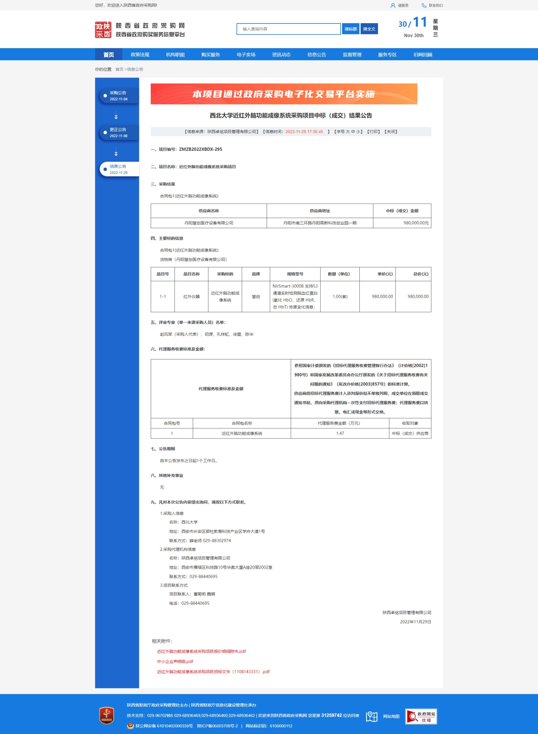 宝威体育官网首页近红外脑功能成像系统采购项目中标(成交)结果公告 作者: 编辑:采购与招标办公室 时间:2022-11-30 原公告链接:http://www.ccgp-shaanxi.gov.cn/freecms/site/shaanxi/ggxx/info/2022/8a69c8558405a9700184c2ab3a36776d.html?noticeType=001021¬iceId=027a7051-6fca-11ed-9a8e-08c0eb20c666