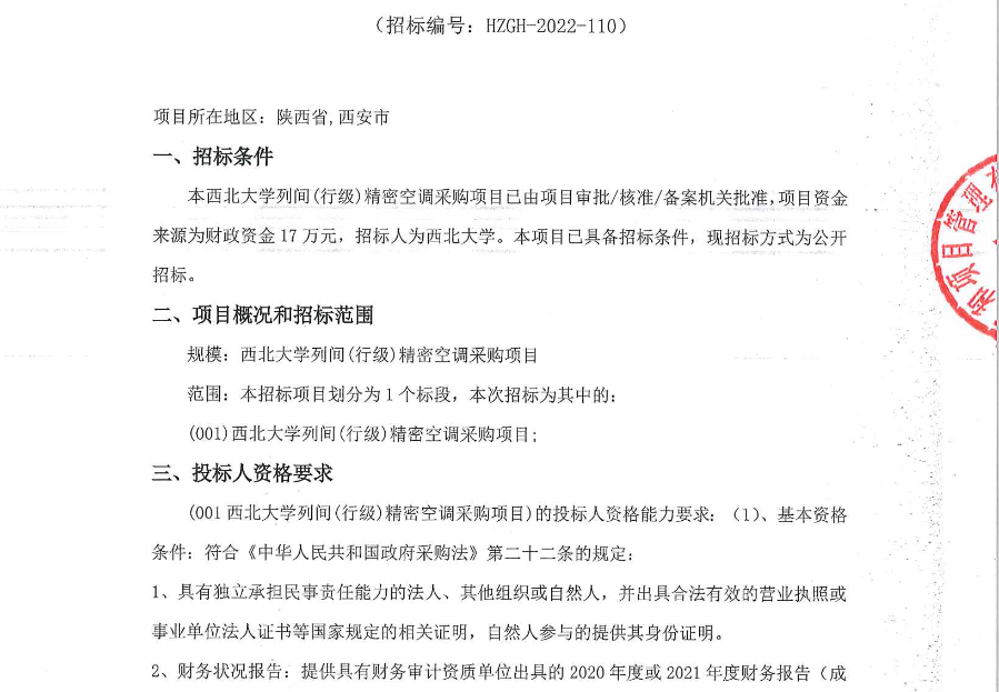 宝威体育官网首页列间(行级)精密空调采购项目公开招标公告 作者: 编辑:采购与招标办公室 时间:2022-11-30 原公告链接:http://bulletin.sntba.com/biddingBulletin/2022-11-30/504885.html