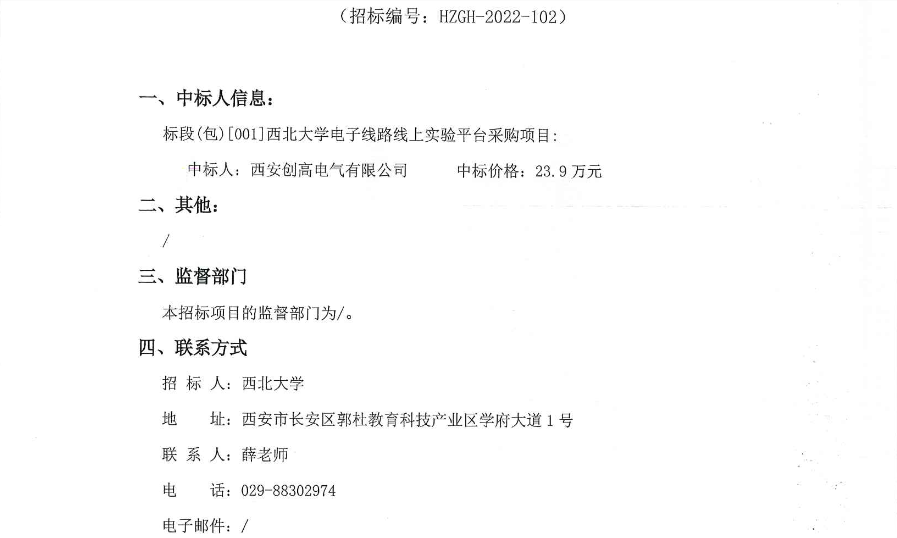 宝威体育官网首页电子线路线上实验平台采购项目中标结果公告 作者: 编辑:采购与招标办公室 时间:2022-12-02 原公告链接:http://bulletin.sntba.com/resultBulletin/2022-12-02/505921.html