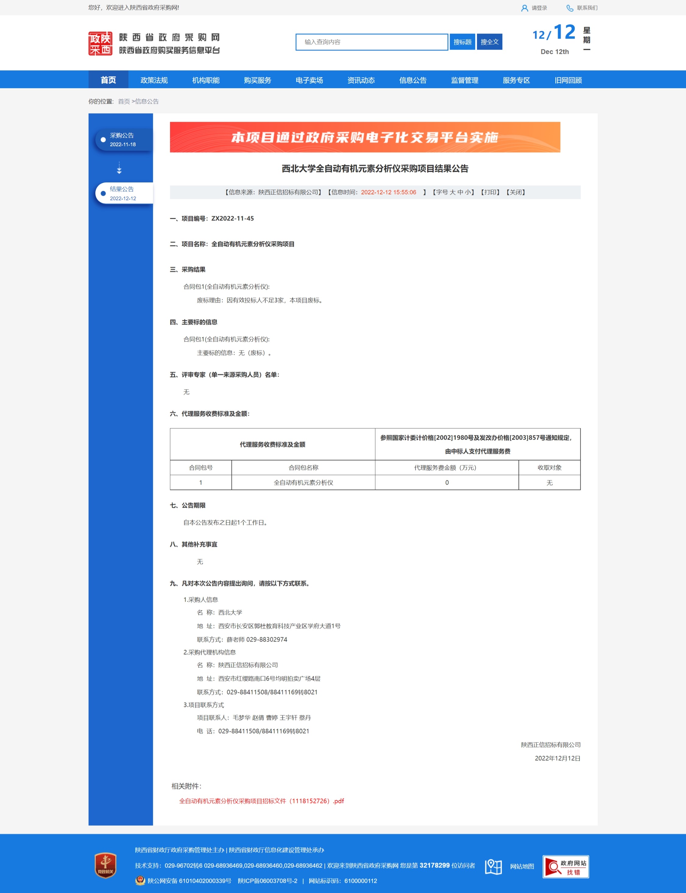 宝威体育官网首页全自动有机元素分析仪采购项目结果公告 作者: 编辑:采购与招标办公室 时间:2022-12-12 原公告链接:http://www.ccgp-shaanxi.gov.cn/freecms/site/shaanxi/ggxx/info/2022/8a69c86384ea4cb5018504dda82a5145.html?noticeType=001006¬iceId=fc98d5c7-79f2-11ed-9a8e-08c0eb20c666