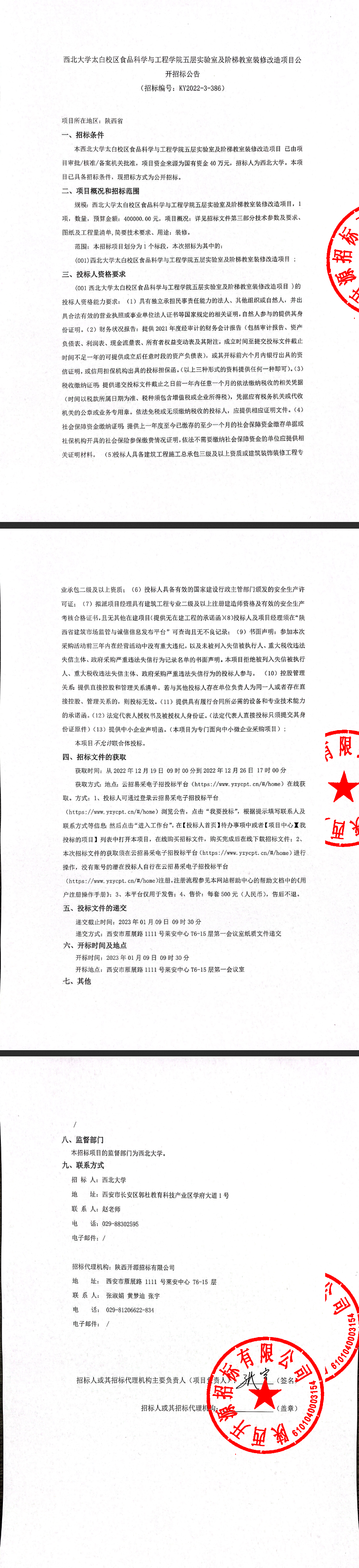 宝威体育官网首页太白校区食品科学与工程学院五层实验室及阶梯教室装修改造项目公开招标公告