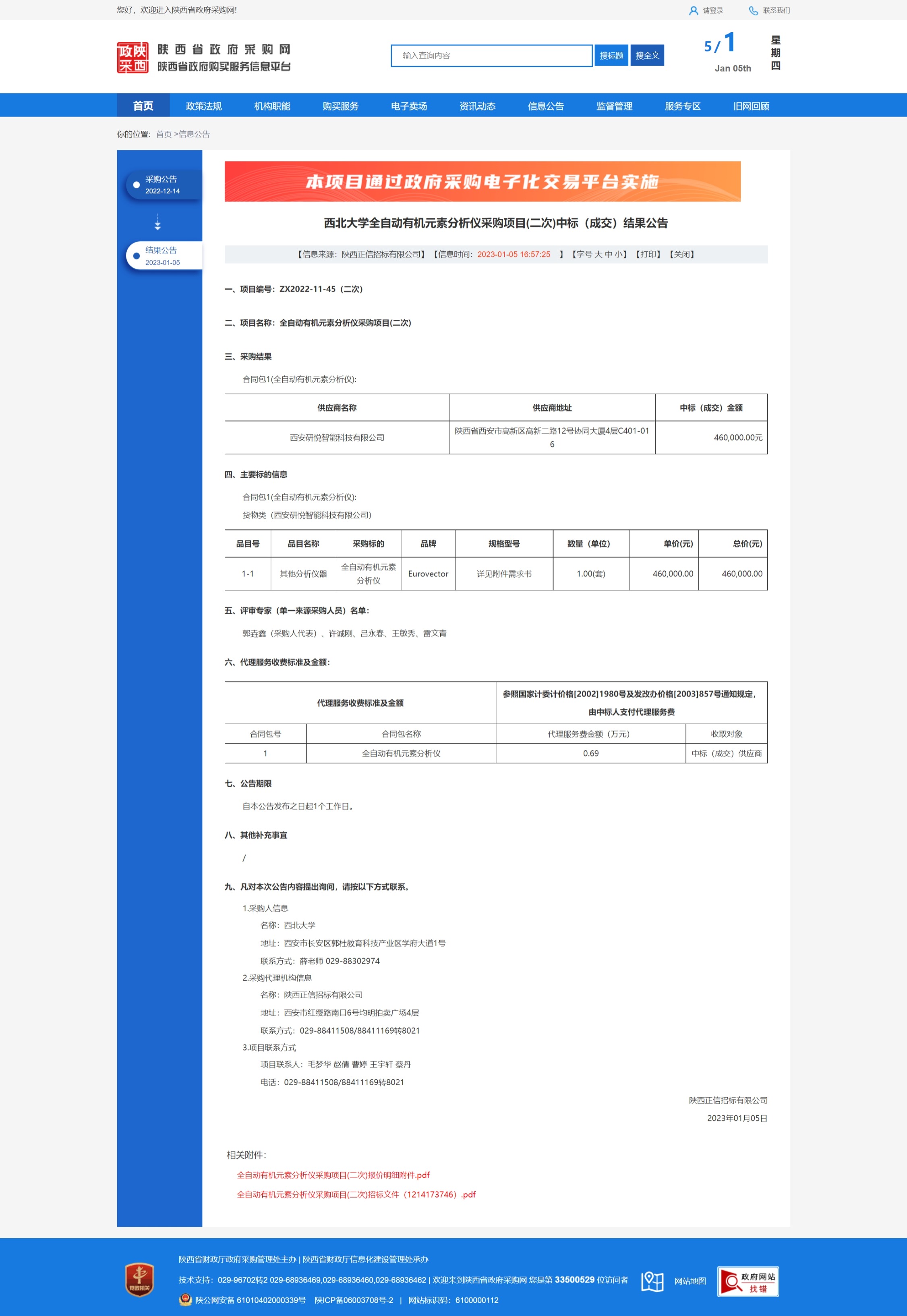 宝威体育官网首页全自动有机元素分析仪采购项目(二次)中标(成交)结果公告 作者: 编辑:采购与招标办公室 时间:2023-01-05 原公告链接:http://www.ccgp-shaanxi.gov.cn/freecms/site/shaanxi/ggxx/info/2023/8a69c86f852dbe9b0185807f572a04d1.html?noticeType=001021¬iceId=b8ed0ed9-8cd7-11ed-9a8e-08c0eb20c666