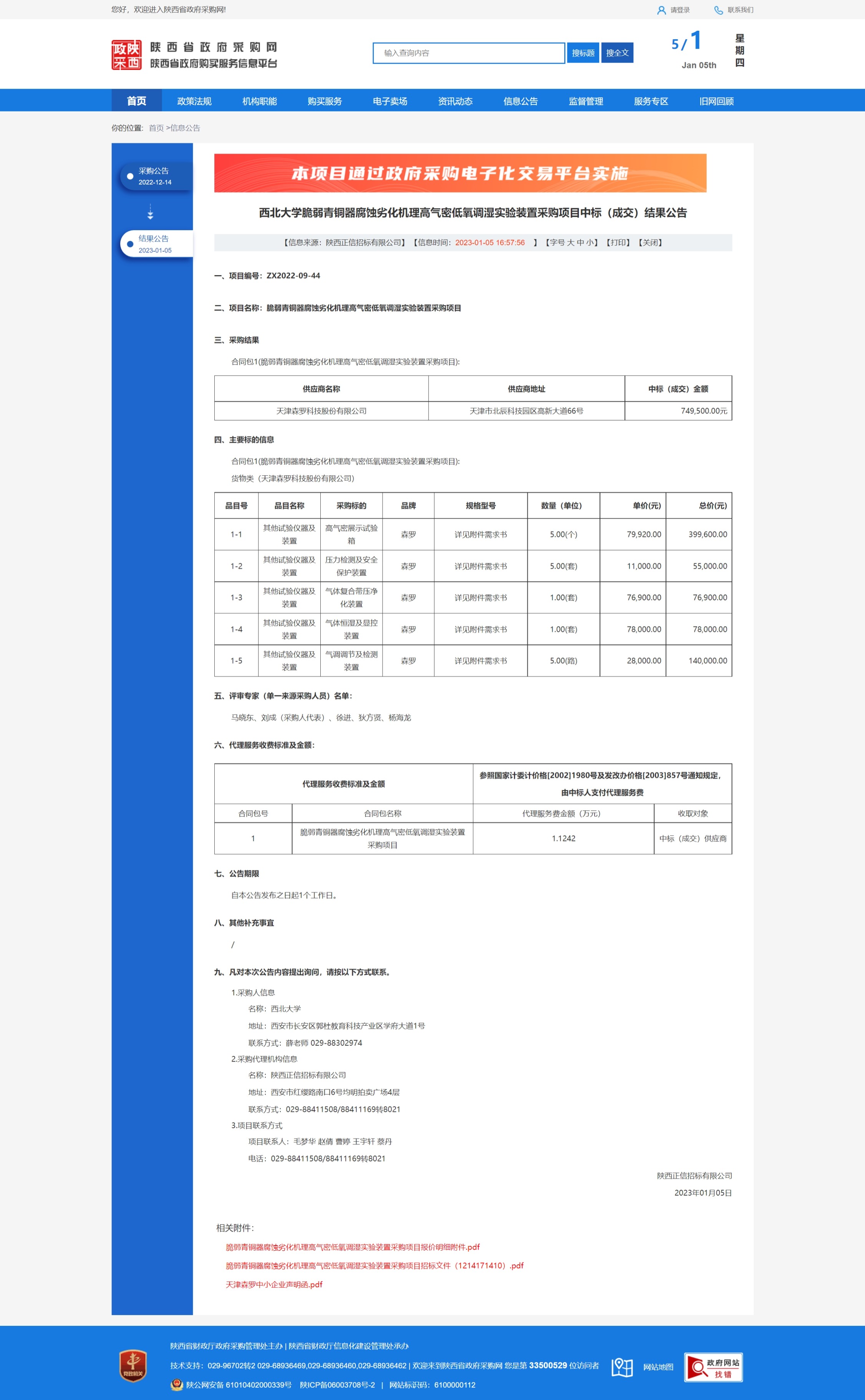 宝威体育官网首页脆弱青铜器腐蚀劣化机理高气密低氧调湿实验装置采购项目中标(成交)结果公告 作者: 编辑:采购与招标办公室 时间:2023-01-05 原公告链接:http://www.ccgp-shaanxi.gov.cn/freecms/site/shaanxi/ggxx/info/2023/8a69c054852dbea601858077ea453bb3.html?noticeType=001021¬iceId=cbc8e5cb-8cd7-11ed-9a8e-08c0eb20c666