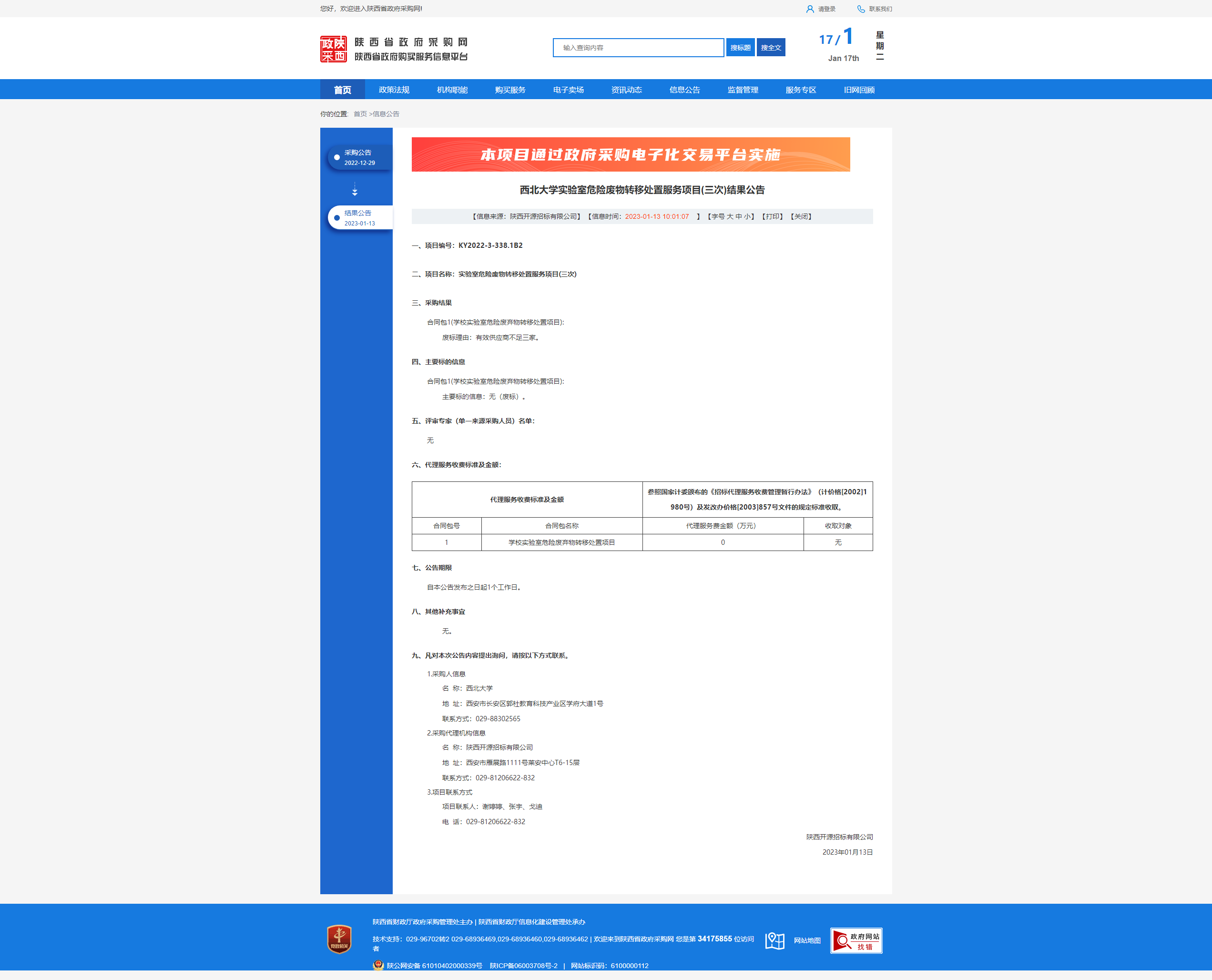 宝威体育官网首页实验室危险废物转移处置服务项目(三次)结果公告