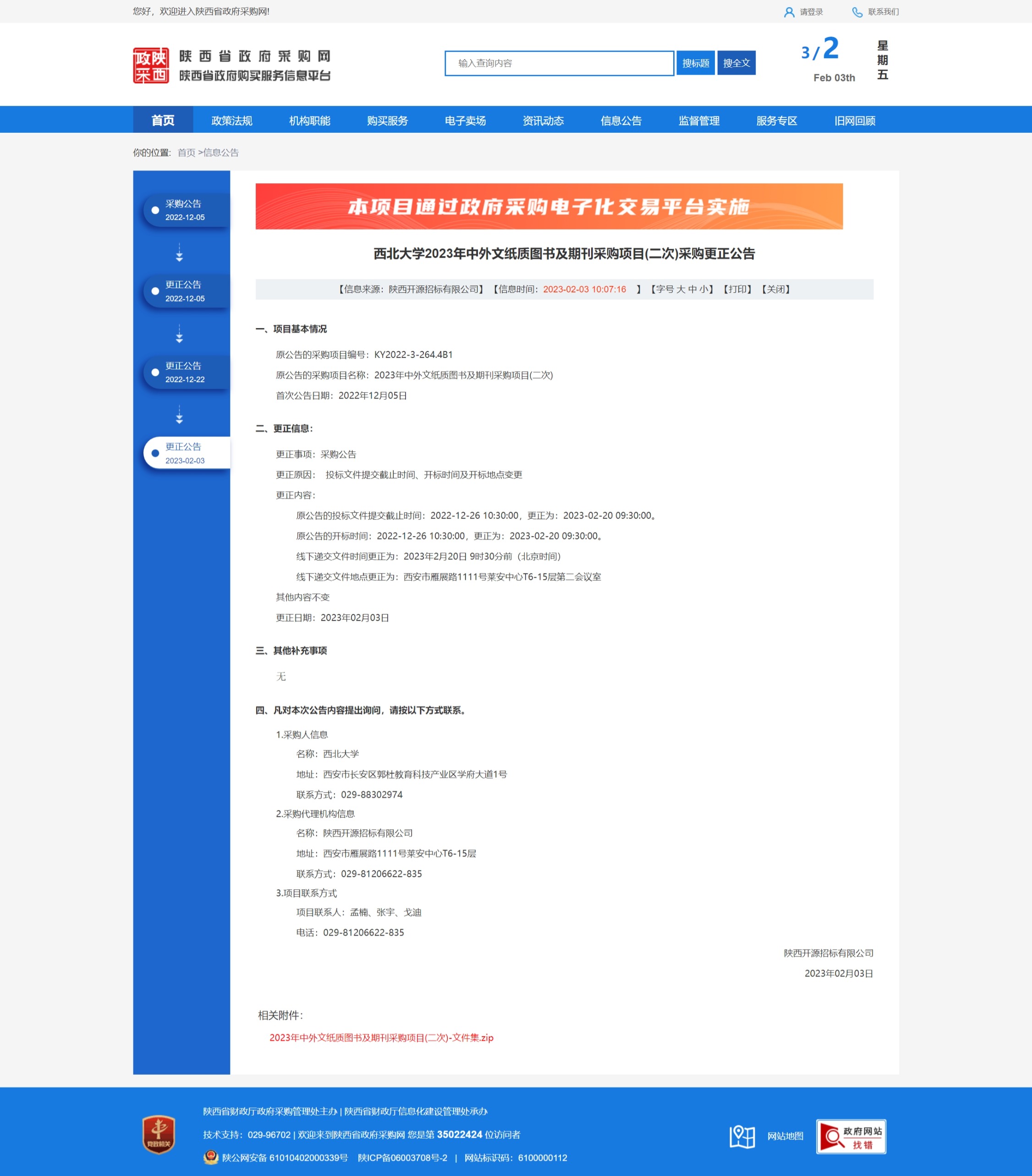 宝威体育官网首页2023年中外文纸质图书及期刊采购项目(二次)采购更正公告 作者: 编辑:采购与招标办公室 时间:2023-02-03 原公告链接:http://www.ccgp-shaanxi.gov.cn/freecms/site/shaanxi/ggxx/info/2023/8a69c2e7858176f101861168101b5eb5.html?noticeType=001031¬iceId=49f867d9-a368-11ed-9a8e-08c0eb20c666