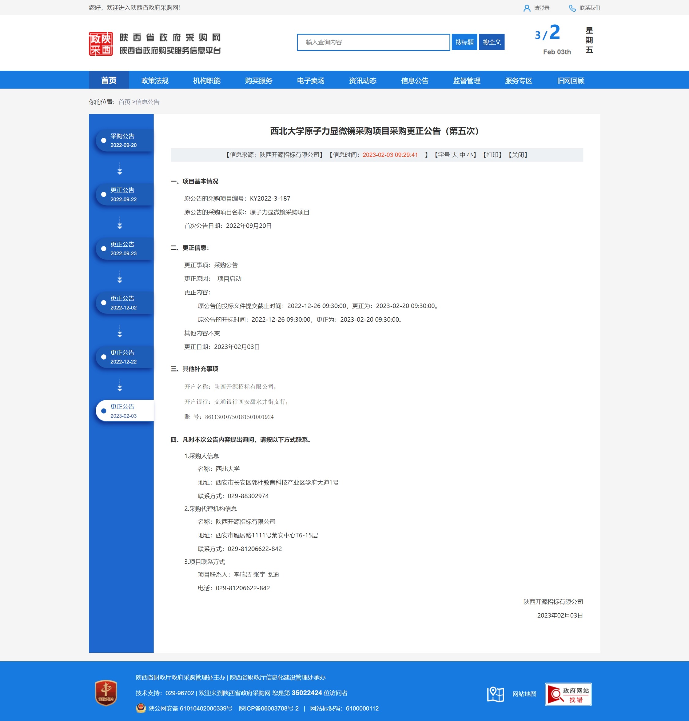 宝威体育官网首页原子力显微镜采购项目采购更正公告 作者: 编辑:采购与招标办公室 时间:2023-02-03 原公告链接:http://www.ccgp-shaanxi.gov.cn/freecms/site/shaanxi/ggxx/info/2023/8a69c875858179a7018614dfbb5c2585.html?noticeType=001031¬iceId=09c0ceef-a363-11ed-9a8e-08c0eb20c666