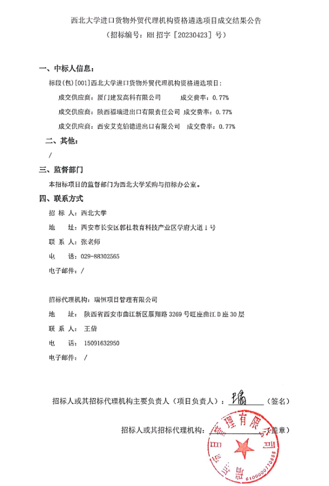 宝威体育官网首页进口货物外贸代理机构资格遴选项目成交结果公告