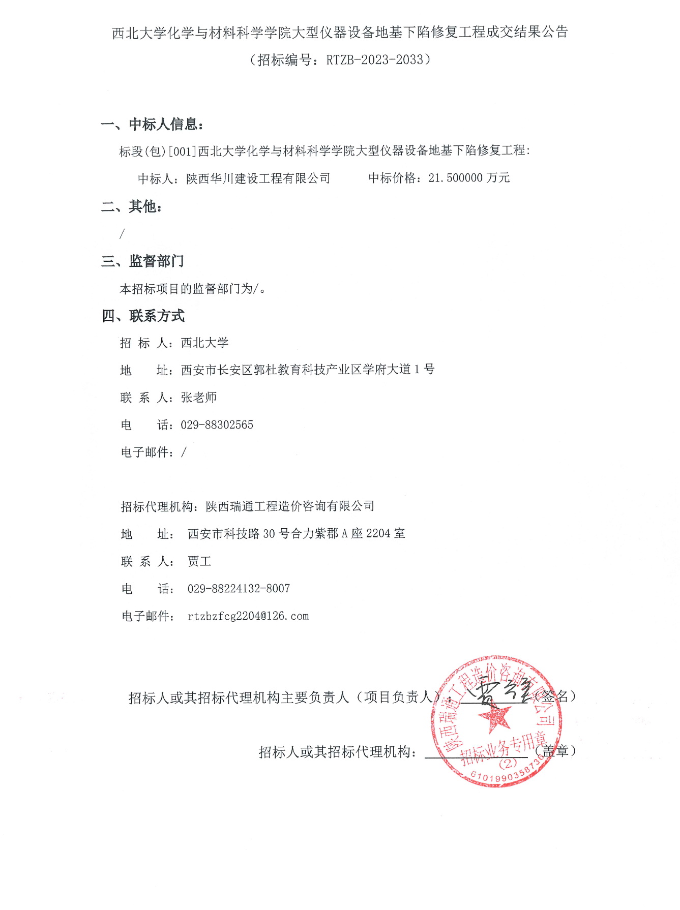 宝威体育官网首页化学与材料科学学院大型仪器设备地基下陷修复工程成交结果公告
