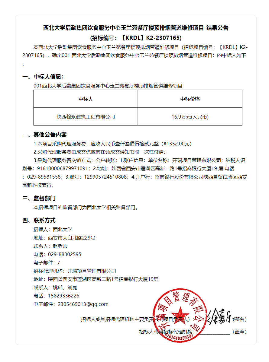 宝威体育官网首页后勤集团饮食服务中心玉兰苑餐厅楼顶排烟管道维修项目-结果公告