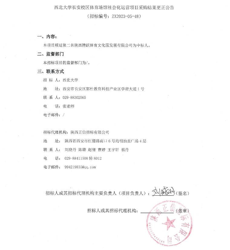 宝威体育官网首页长安校区体育场馆社会化运营项目采购结果更正公告