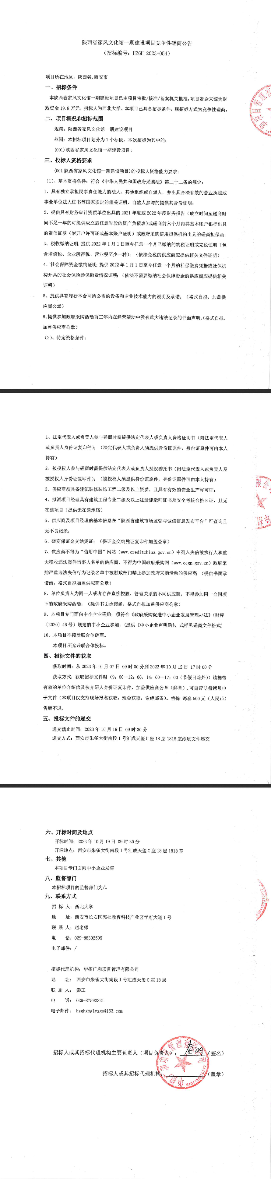 陕西省家风文化馆一期建设项目竞争性磋商公告