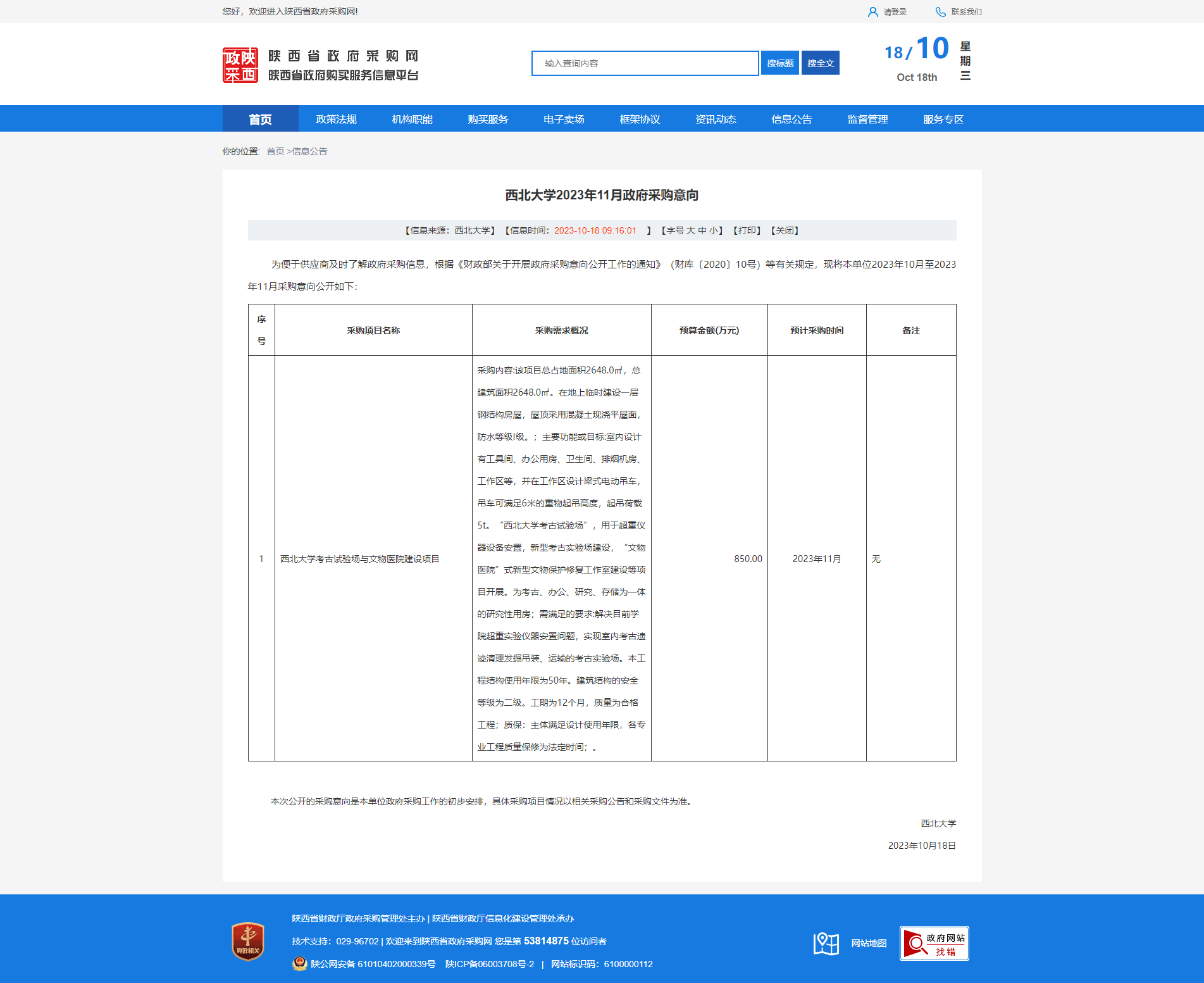 宝威体育官网首页2023年11月政府采购意向