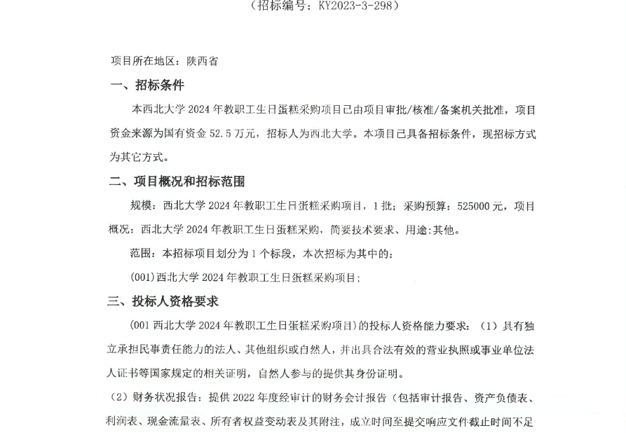 宝威体育官网首页2024年教职工生日蛋糕采购项目竞争性磋商公告 作者: 编辑:采购与招标办公室 时间:2023-11-27 原公告链接:http://bulletin.sntba.com/biddingBulletin/2023-11-27/855167.html