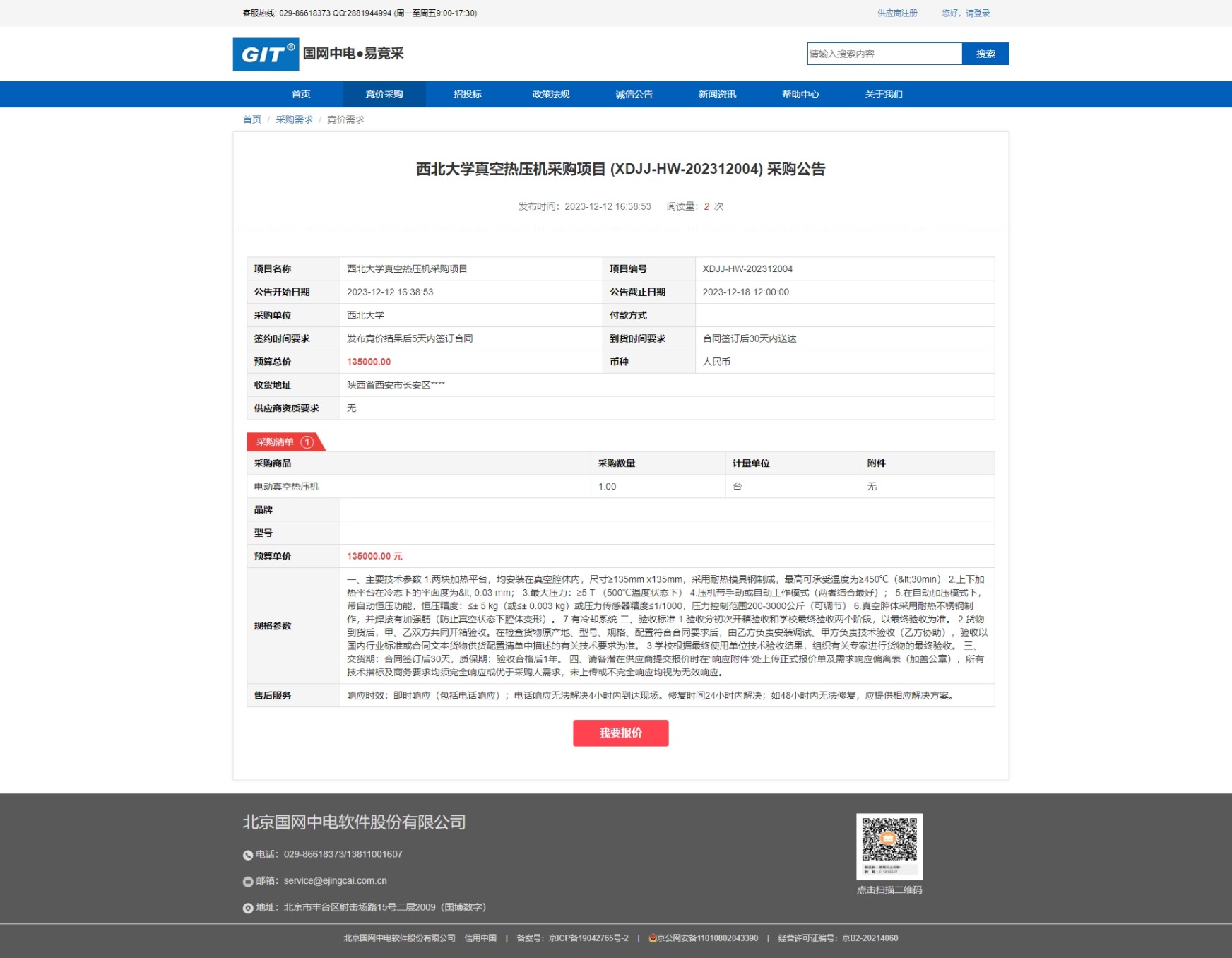 宝威体育官网首页真空热压机采购项目 (XDJJ-HW-202312004) 采购公告 作者: 编辑:采购与招标办公室 时间:2023-12-12 原公告链接:https://www.ejingcai.com.cn/site/bidding/detail/7765