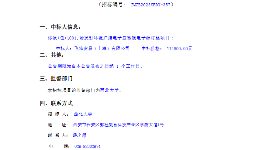 宝威体育官网首页场发射环境扫描电子显微镜电子源灯丝项目采购结果公告 作者: 编辑:采购与招标办公室 时间:2023-12-14 原公告链接:http://www.sntba.com/website/gg_show.aspx?id=263188