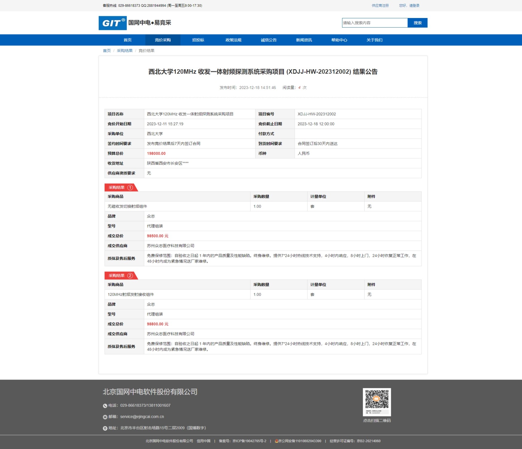 宝威体育官网首页120MHz 收发一体射频探测系统采购项目 (XDJJ-HW-202312002) 结果公告 作者: 编辑:采购与招标办公室 时间:2023-12-18 原公告链接:https://www.ejingcai.com.cn/site/bidding/detail/7902