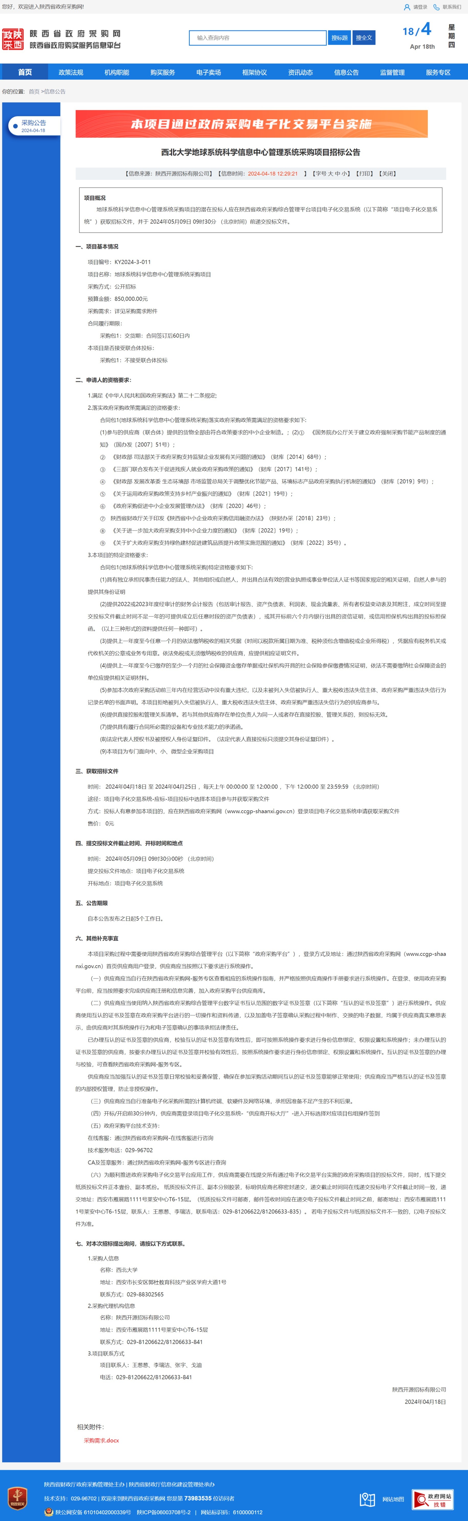 宝威体育官网首页地球系统科学信息中心管理系统采购项目招标公告
