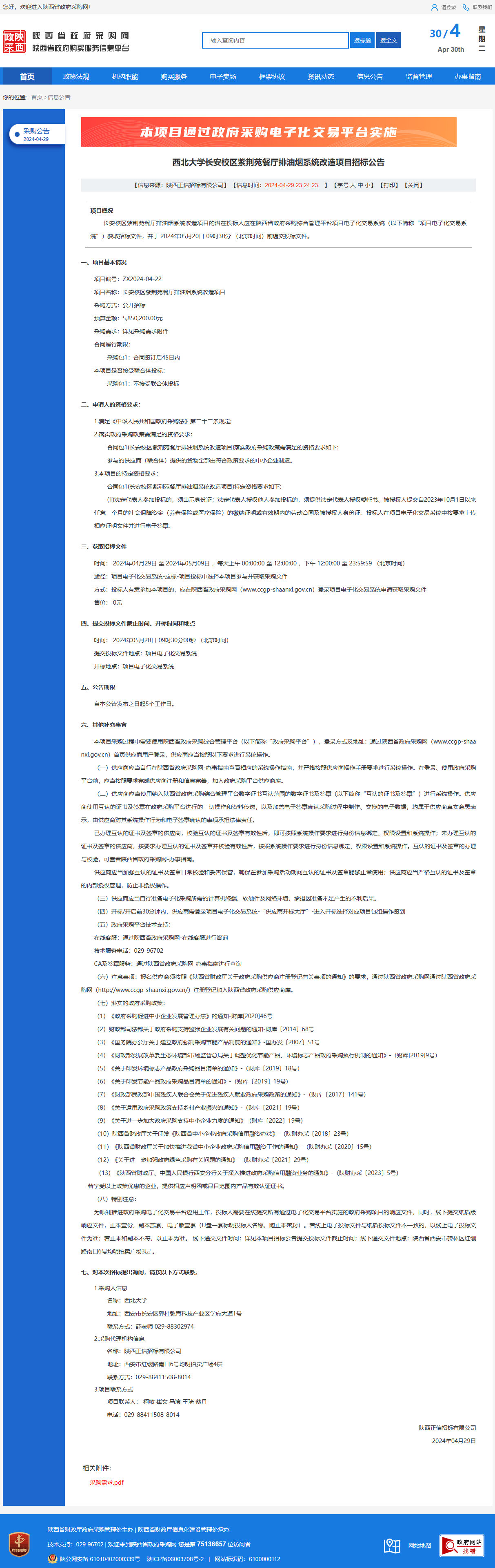 宝威体育官网首页长安校区紫荆苑餐厅排油烟系统改造项目招标公告