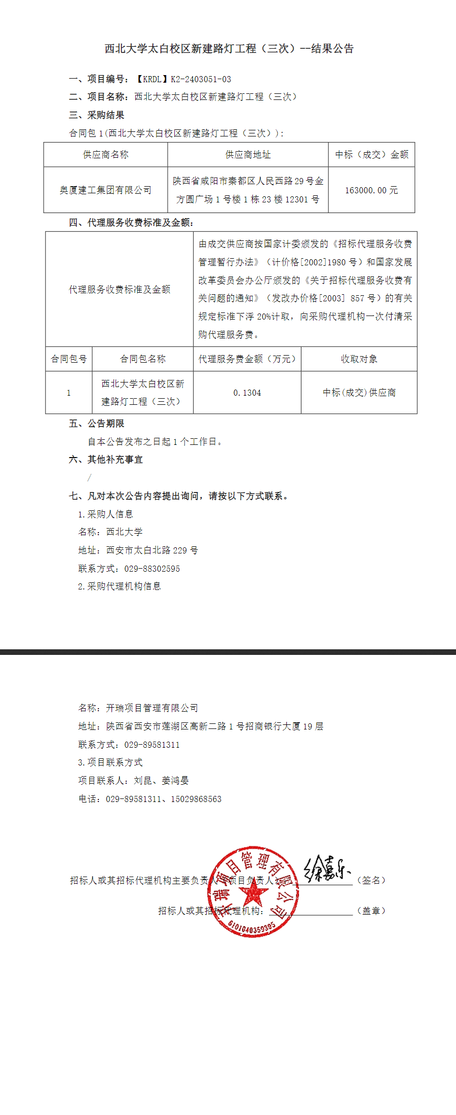 宝威体育官网首页太白校区新建路灯工程(三次)结果公告